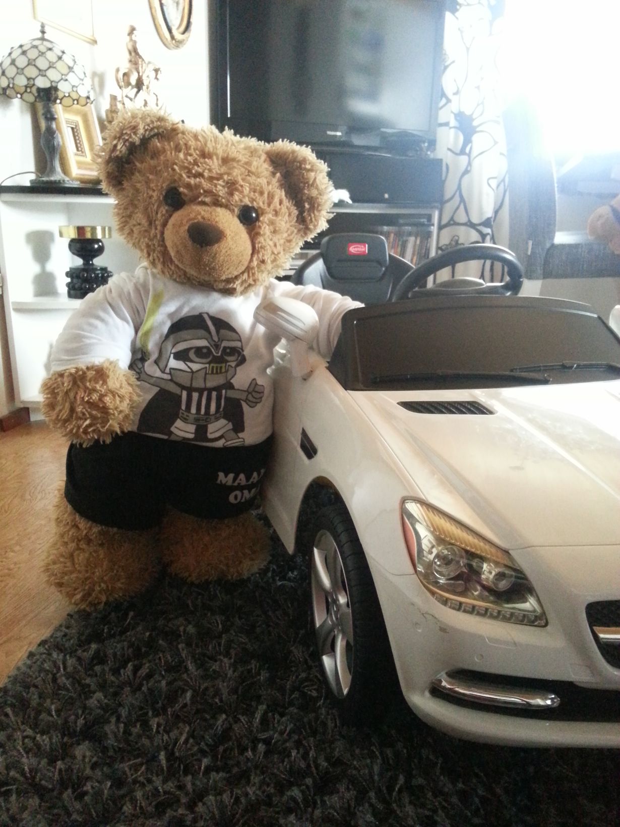 Karhu-Herran nimi on Häirikkö. 10 vuotta siitten meille asumaan tullut nalle. Ystäväni ostama. Koska perheessä ei ole lapsia hänestä on tullut perheen lellikki, kuten kuvasta näkyy omistaa mm. jopa oman auton.