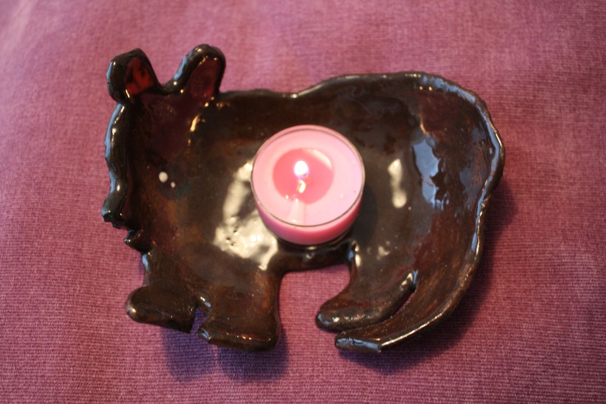 Lapsenlapsen savityökurssilla tekemä karhu oli mieluisa yllätyslahja kynttilänvalossa viihtyvälle mummille.