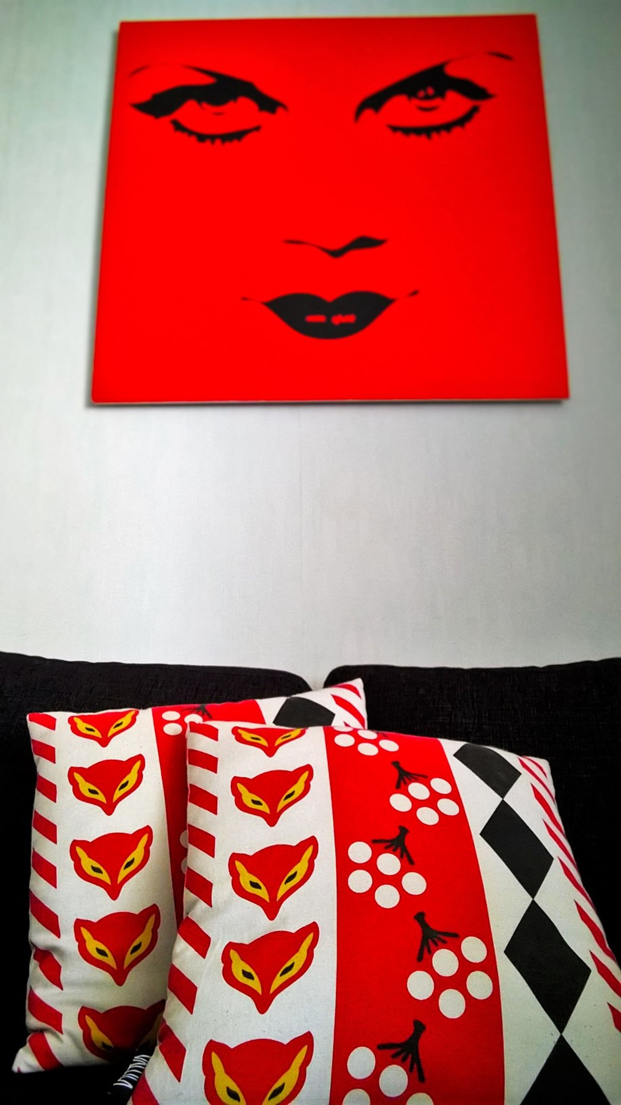 Pitkän etsinnän jälkeen kotiutin herkulliset Vallilan tyynynpäälliset. Käy olohuoneessa hyvin yhteen punaisen kirppislöytötaulun kanssa!