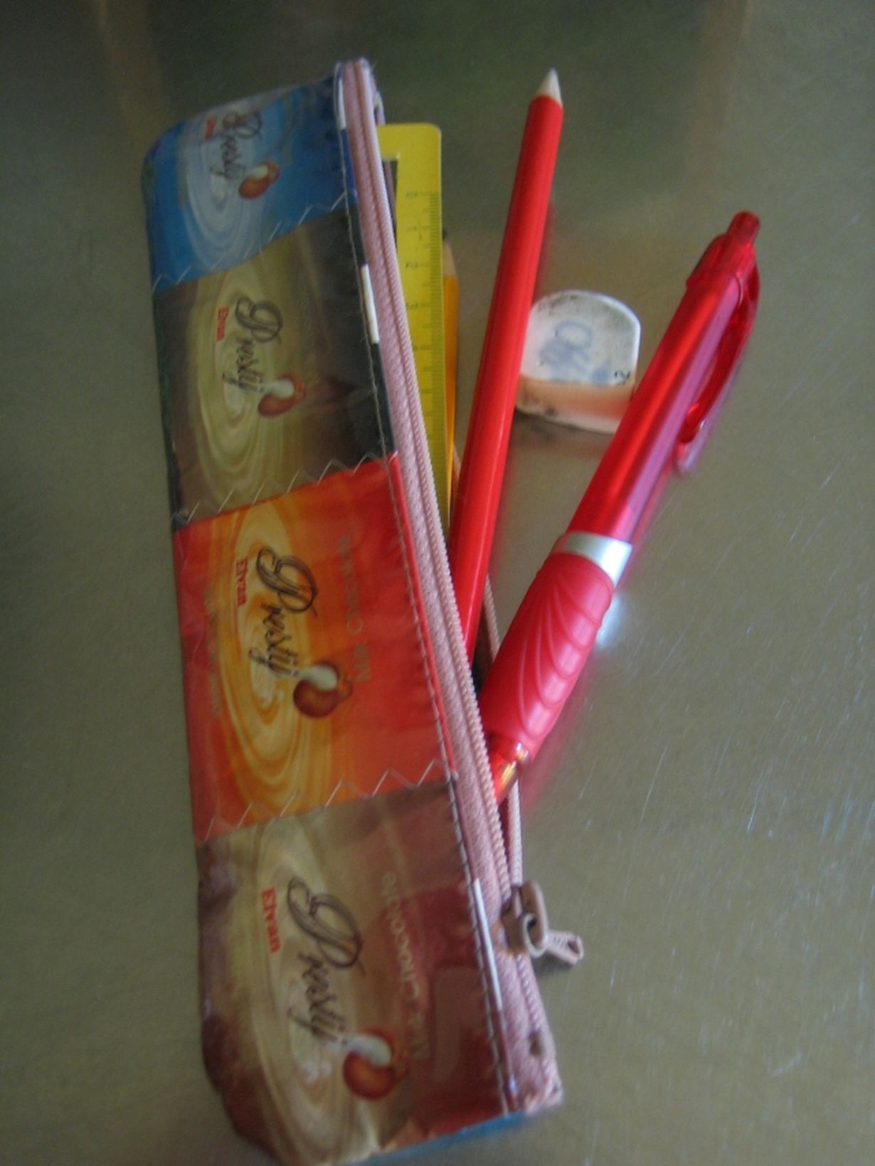 Kauniit värit ja uusiokäyttö ovat minun juttuni: Herkuttelen silmilläni ja saan iloa sydämeeni sommitellessani vaikkapa tällaisen kynäkotelon! Tämä kulkee repussani siellä missä minäkin.