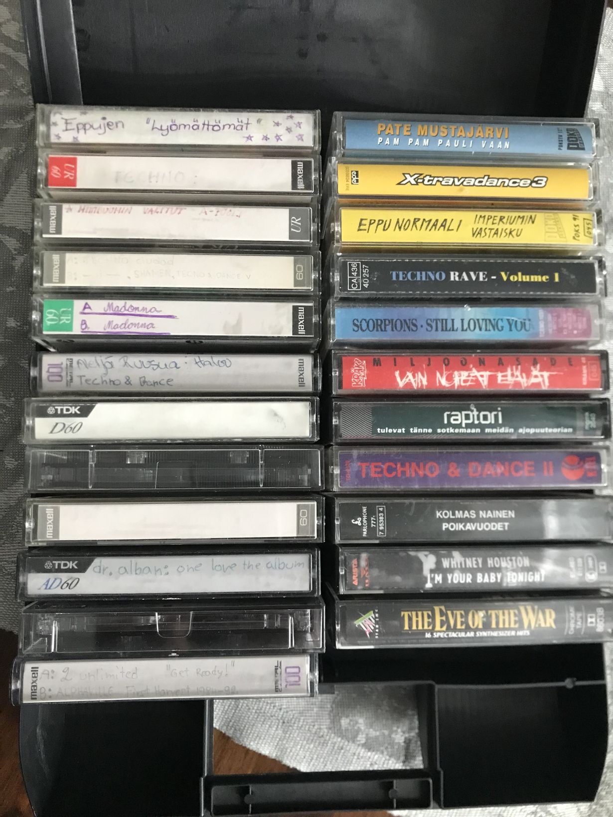 C kasetteja isohko kotelollinen. Osa itse nauhoitettuja ja ostokasetteja.