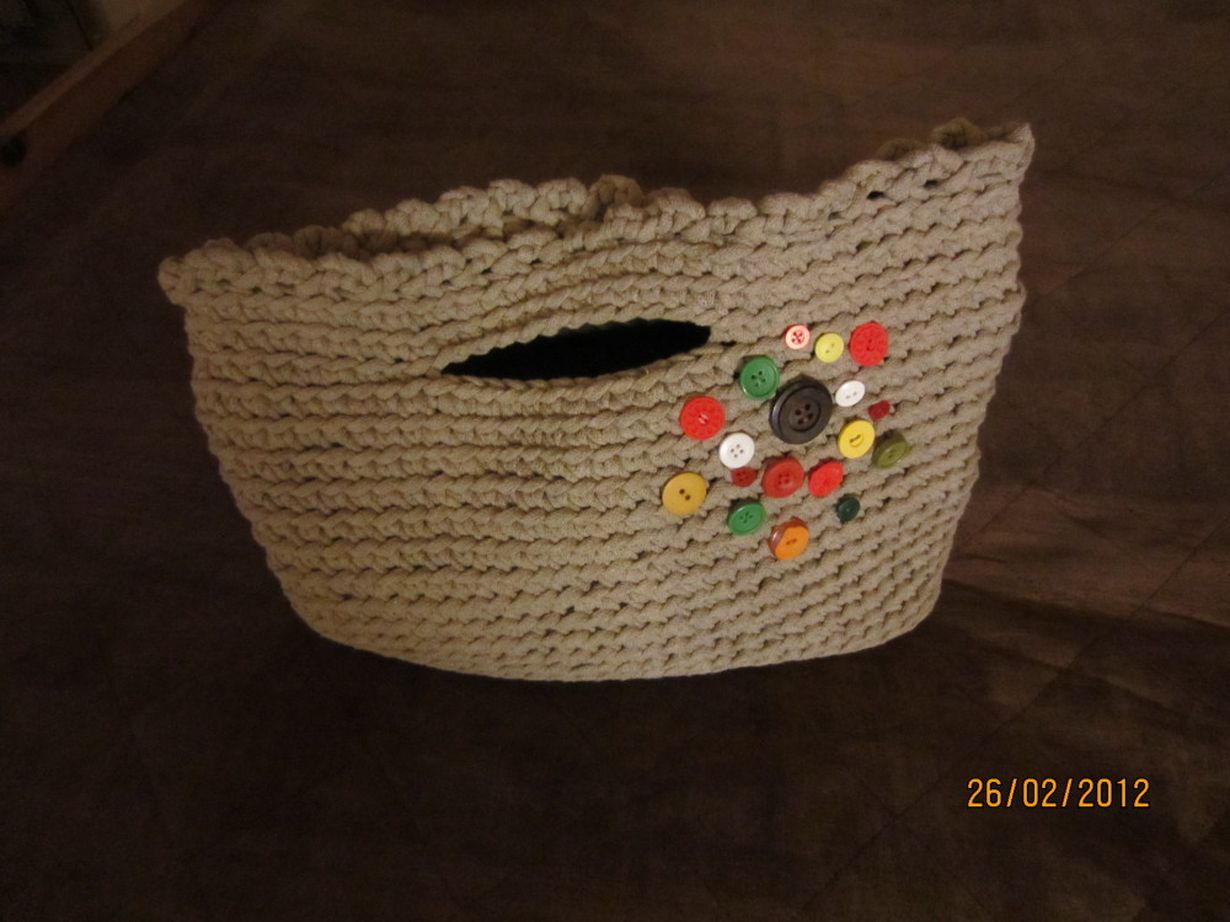 Tein tämän laukun tulevaa kesää varten viekaten ontelokuteesta ja stailasin vanhoilla napeilla. Malli on suoraan ns. "omasta päästä"
