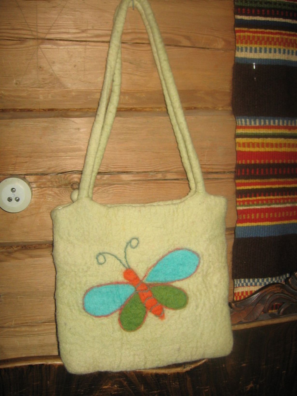 Tämä ihana arki: laukku Käsilaukku 4.3.2012 klo 20:05 Tämä huovutettu "lastentarhanopettajan kesälaukku" löytyi kierrätysajatuksella tehtyjen tavaroiden myyntipöydältä Rokualta.