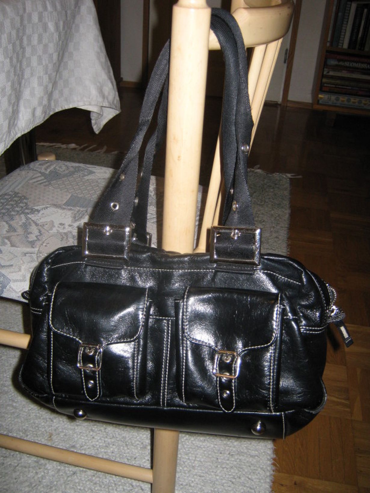 Ostin tämän käsilaukkuni muutama vuosi sitten. Siinä tavarat ovat aina sekaisin enkä tahdo löytää mitään. Sen voi kuitenkin heittää esim. auton etuistuimelle tuntematta mitään suurempaa surua. Laukussa on tallessa kaikki tarvitsemani, kunhan vain jaksan etsiä ne.
