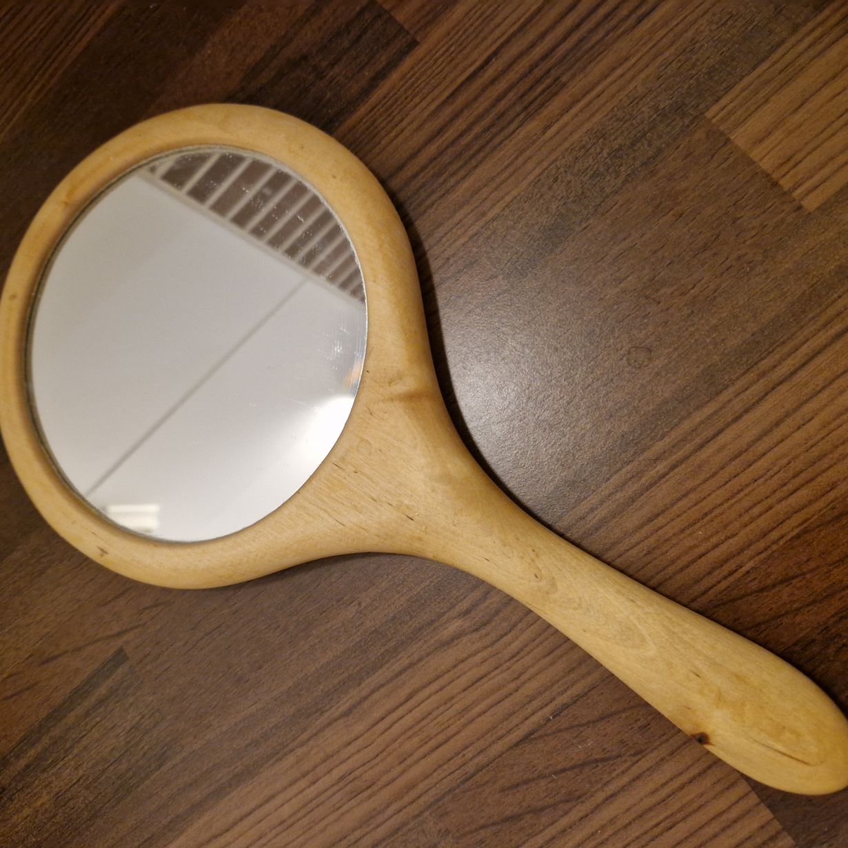 Pyysin joululahjaksi käsipeiliä. Mitä sainkaan! Mieheni teki silkin sileäksi hiotun 2-puoleisen koivupeilin. Yksi kauneimmista arkiesineistäni.