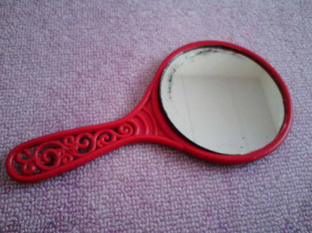 Sain tämän punaisen peilin yli 30 vuotta sitten lapsena. Mukana oli muovinen laukku ja pieni nukke. Muut ovat jo hävinneet, mutta peili on kulkenut mukanani muutosta muuttoon.