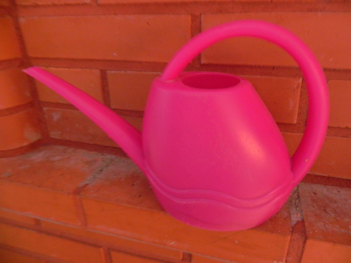 Sisäkastelukannuni vaihtuu joka vuosi. Syynä se, että lapset vievät sen joka kesä ulos ja se jää sille tielle. Tällä hetkellä on menossa mukana tämä punainen.