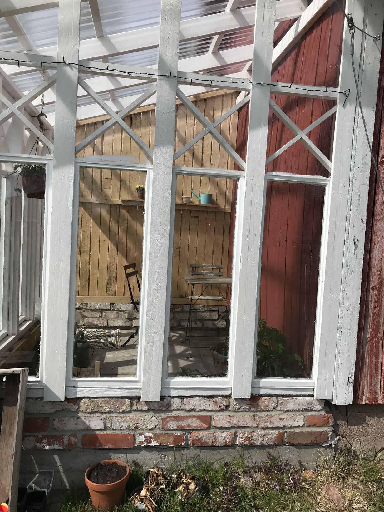 Minun kasvihuone on tehty piharakennuksen päätyyn, vanhoja ikkunoita hyödyntäen. Ja toisessa päädyssä on kanala!