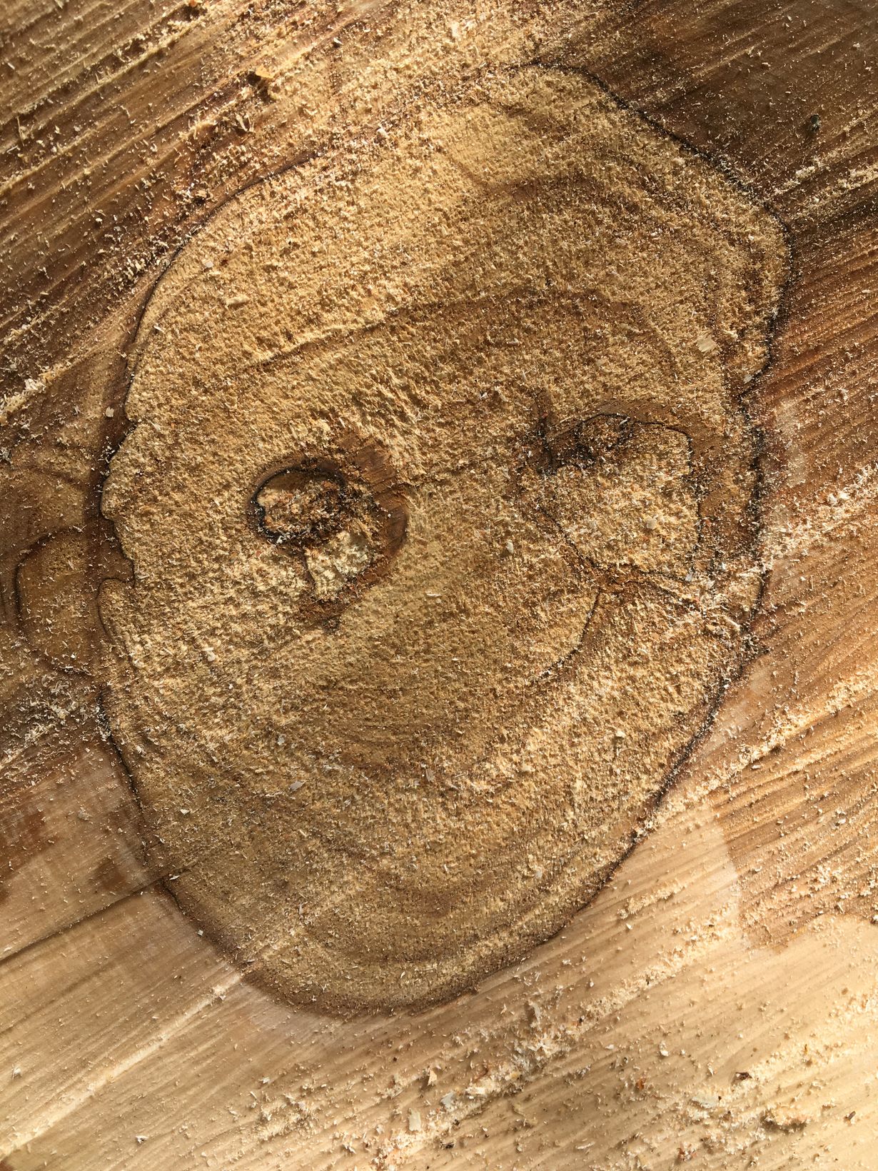 Kaatamastamme koivusta paljastui isän, mökkisaaren edesmenneen isännän tyytyväiset kasvot: hyvin hoidatte hommia.