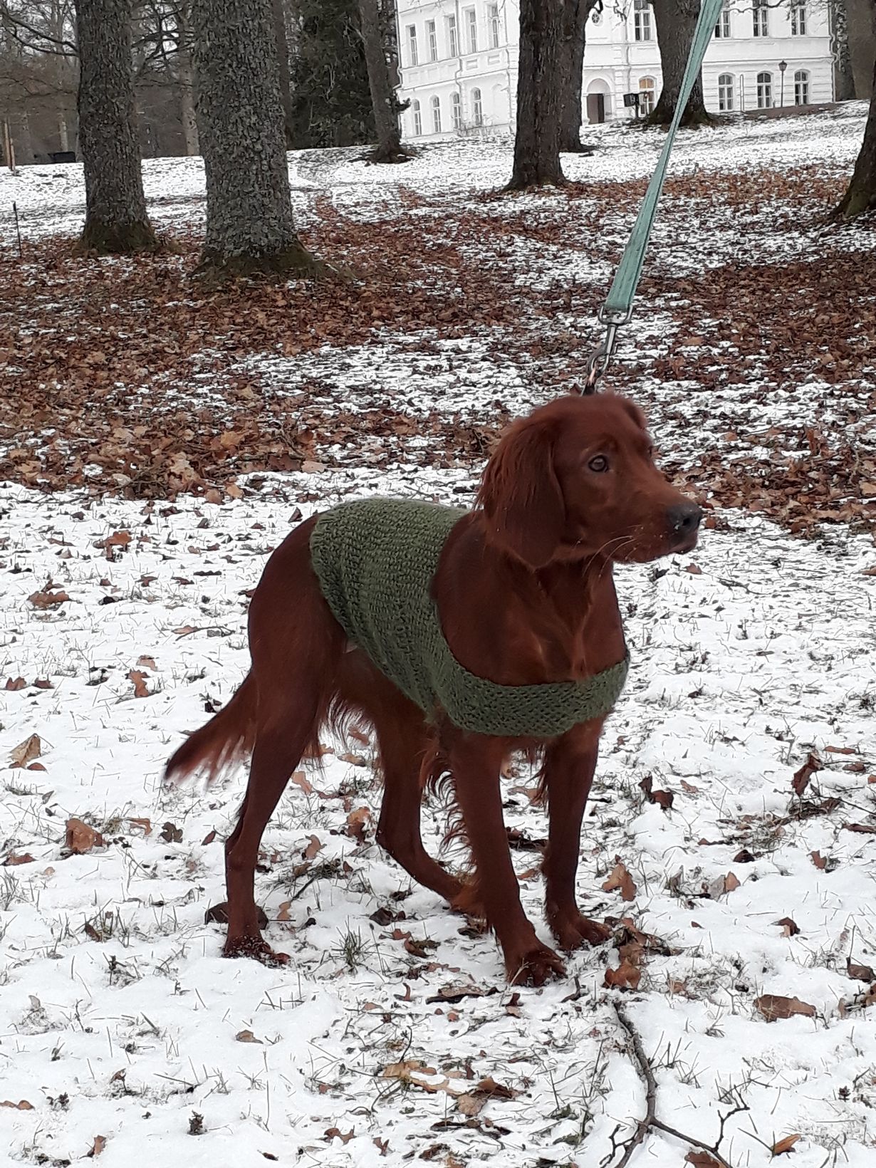 Lähetä kuvakisaan kuva lemmikkisi vaatteesta - voita Moomin Arabian aakkosmukeja! Kata neuleasussa Päivikki Kaarina 26.1.2024 klo 15:50 Irlanninsetteri Katan neuleasu