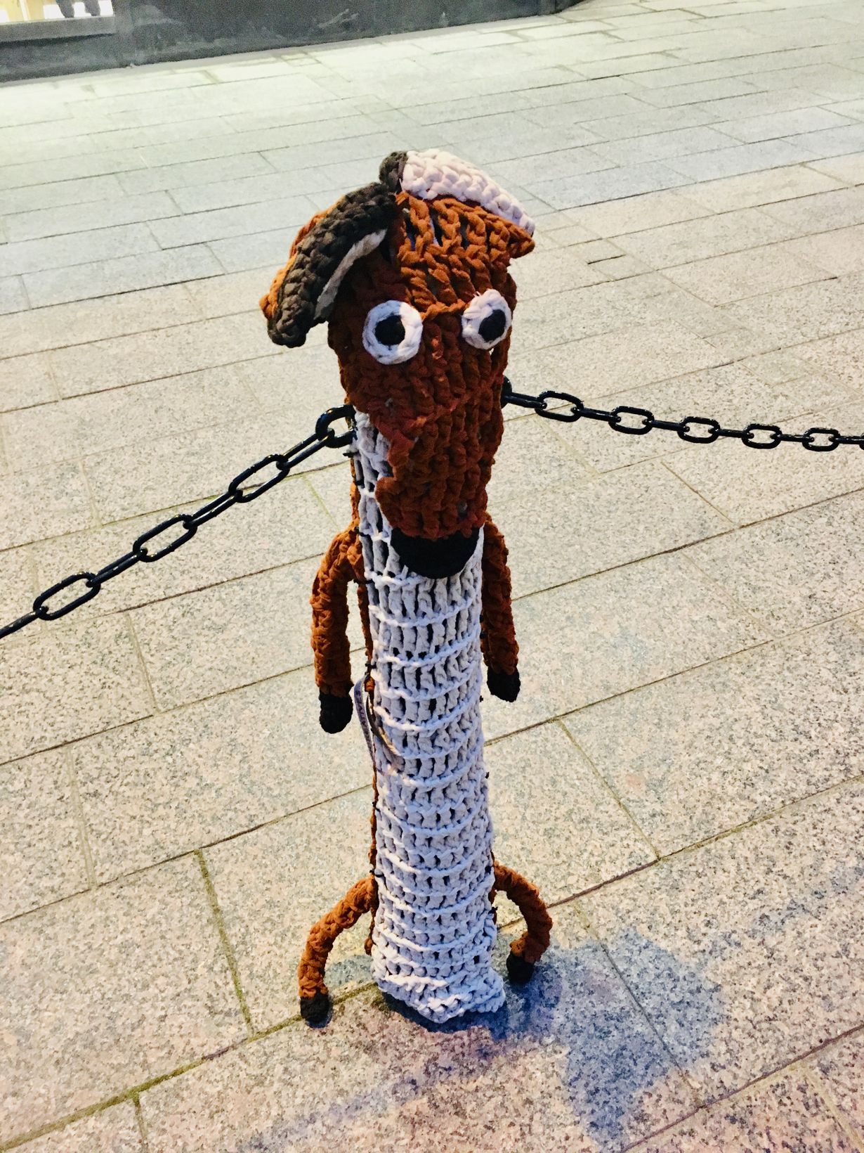 Syksyllä 2016 Helsingin Kampissa oli virkattu eläinhahmoja katupollareiden koristeeksi ?