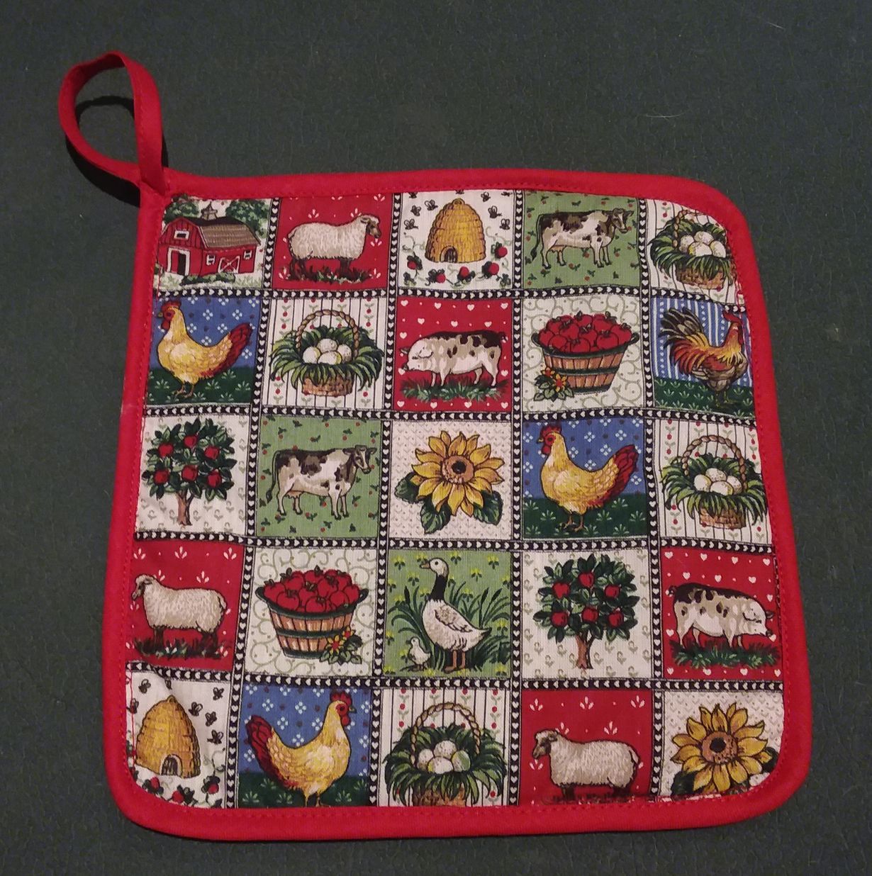 Patalappu-kisan nähtyäni, muistin, että minulla on kaksi noin kaksikymmentä vuotta sitten ihanasta pikkukuvioisesta kankaasta ompelemaani patalappua täysin käyttämättöminä. Liian söpöt käytettäviksi 😊.