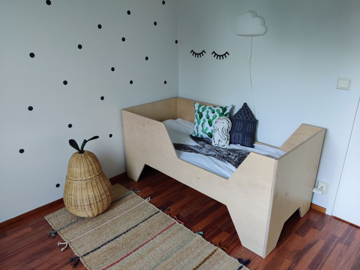 Ylimääräiseksi jäänyt koivuvaneri sai uuden käyttötarkoituksen 3-vuotiaan esikoispoikamme sänkynä. Sänky on vaimoni kanssa yhdessä suunniteltu ja rakennettu vanhempieni autotallissa.