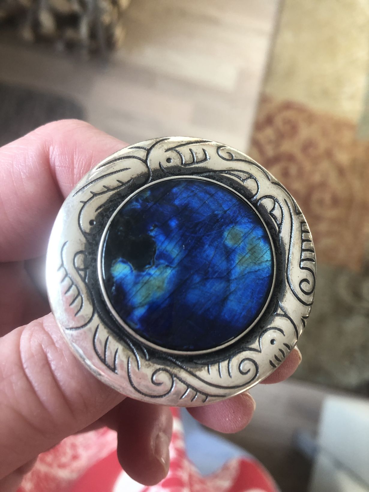 Sain ystäviltäni ylioppilaslahjaksi kauniin rintakorun, joka vaihtaa väriä valaistuksen mukaan. Kivi on suomalainen jalokivi, mutta en muista mikä.