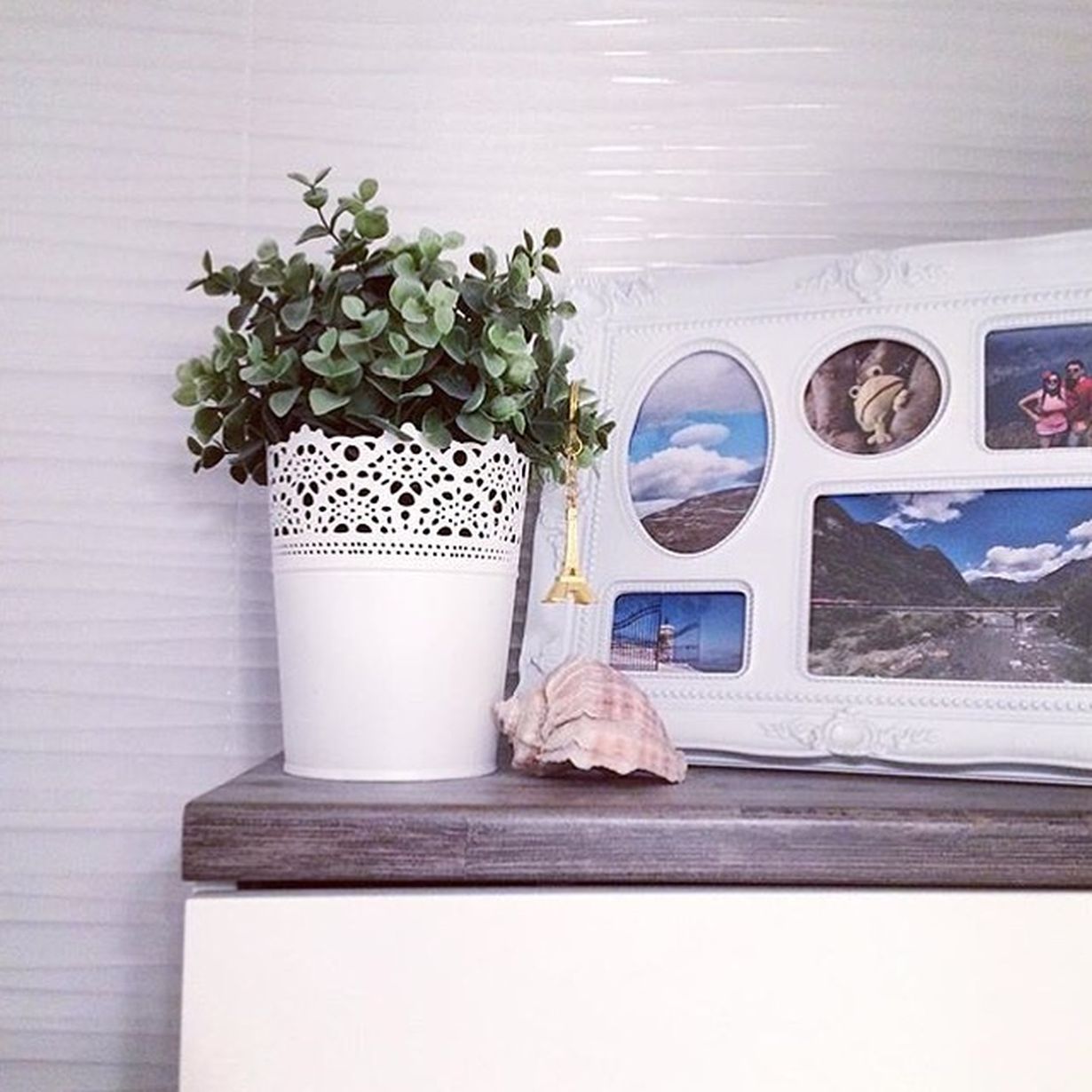Kylpyhuoneessani on kaunis kukkaruukku, jossa on viherkasvi, joka tuo paljon kauneutta ja vihreyttä kylpyhuoneeseen! Kukkaruukun vieressä on kehys, jossa on paljon muistoja matkoista ja tulee aina hymy huulille, kun näkee tämän kohdan