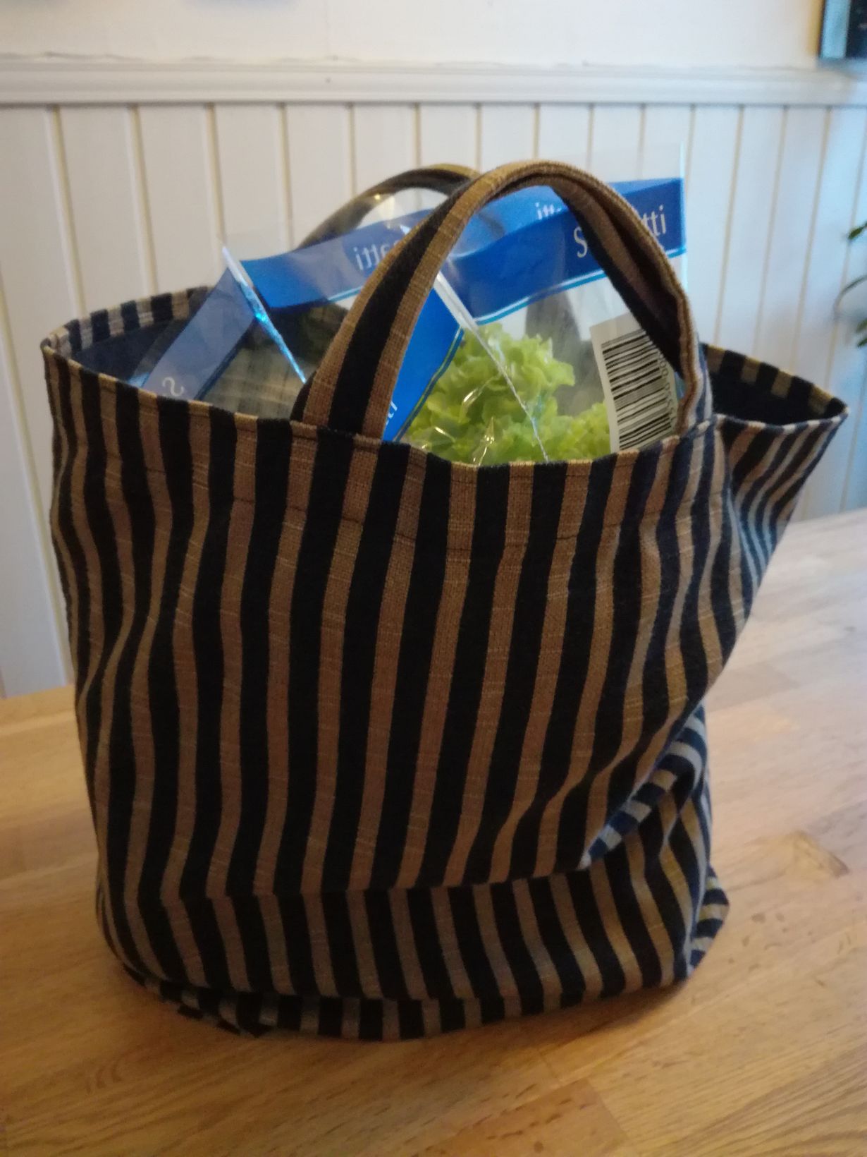 Olen ommellut monta kankaista kauppakassia, kotiin ja autoon. Kassi on helppo napata mukaan kotoa tai autosta kauppaan poiketessa.
