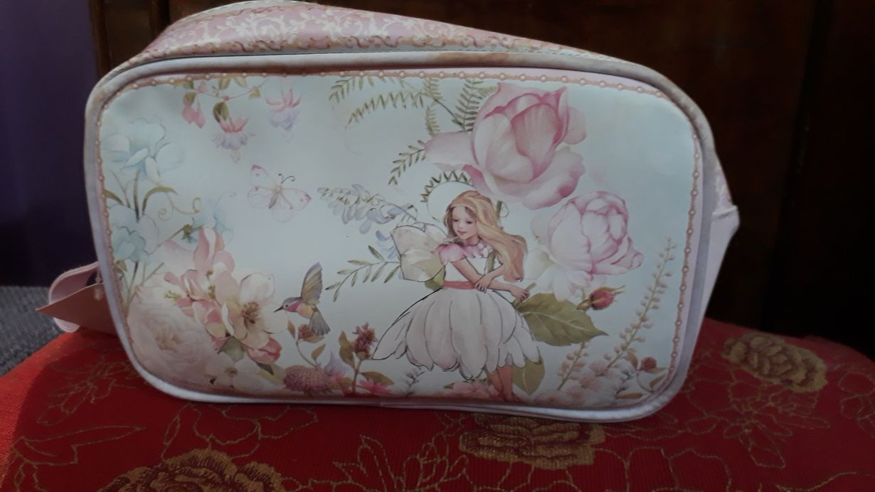 Keijut ja ruusut ihastuttavat tässä meikkilaukussani. Tuskin keiju silti unelmoi ripsiväristä tai punaisesta huulipunasta? Olen saanut tämän viehkeän pussukan tyttäreltäni, ja sitä ennen hurmaavan keijuista kertovan kuvateoksen.