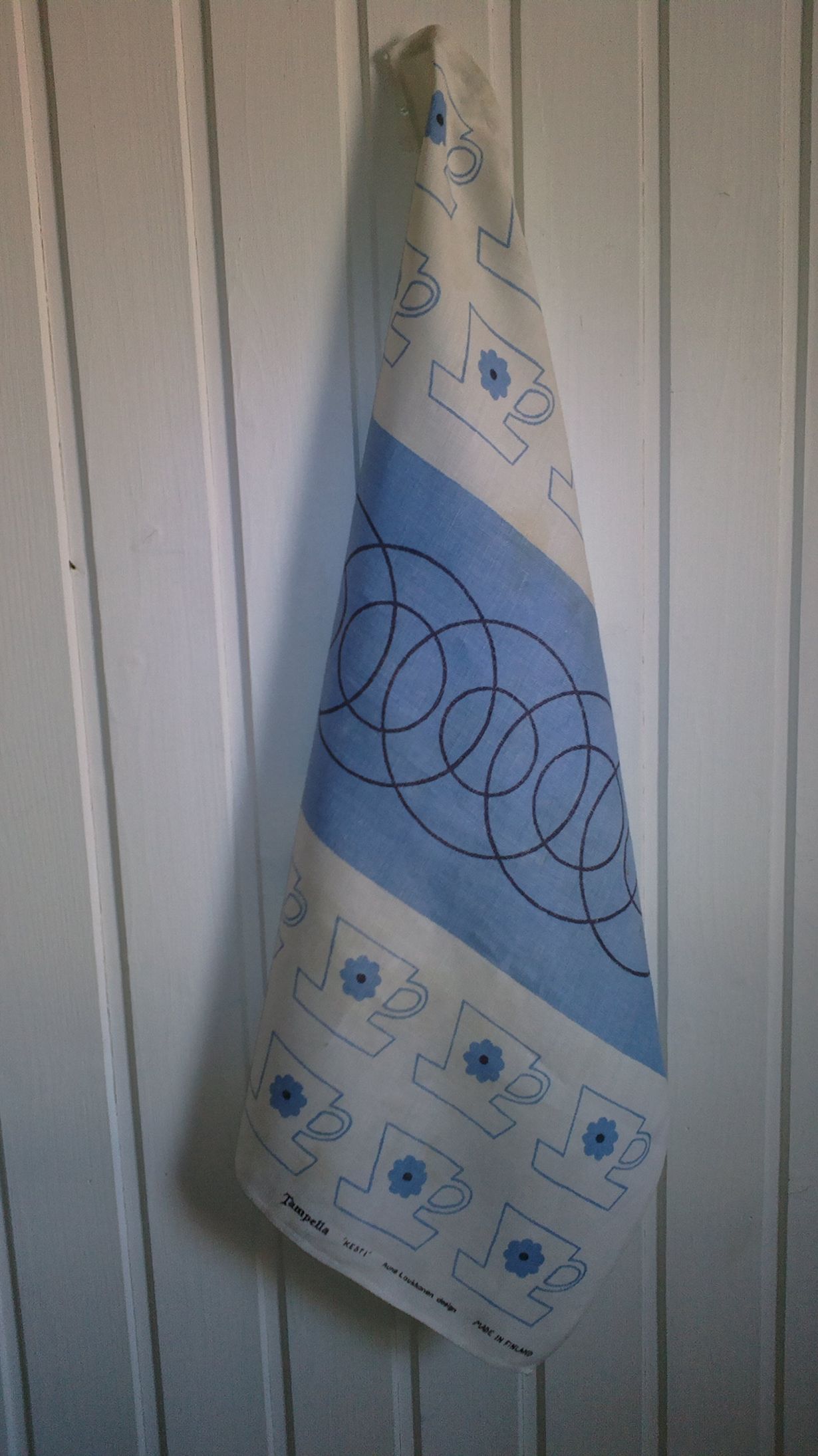 Aune Laukkasen 1960-luvulla Tampellalle pellavapyyhde löytyi äitini mökkiltä. Nyt se on minulla kunniapaikalla mökkiseinällä ns.koristeena...kun en sitä raski käyttää.