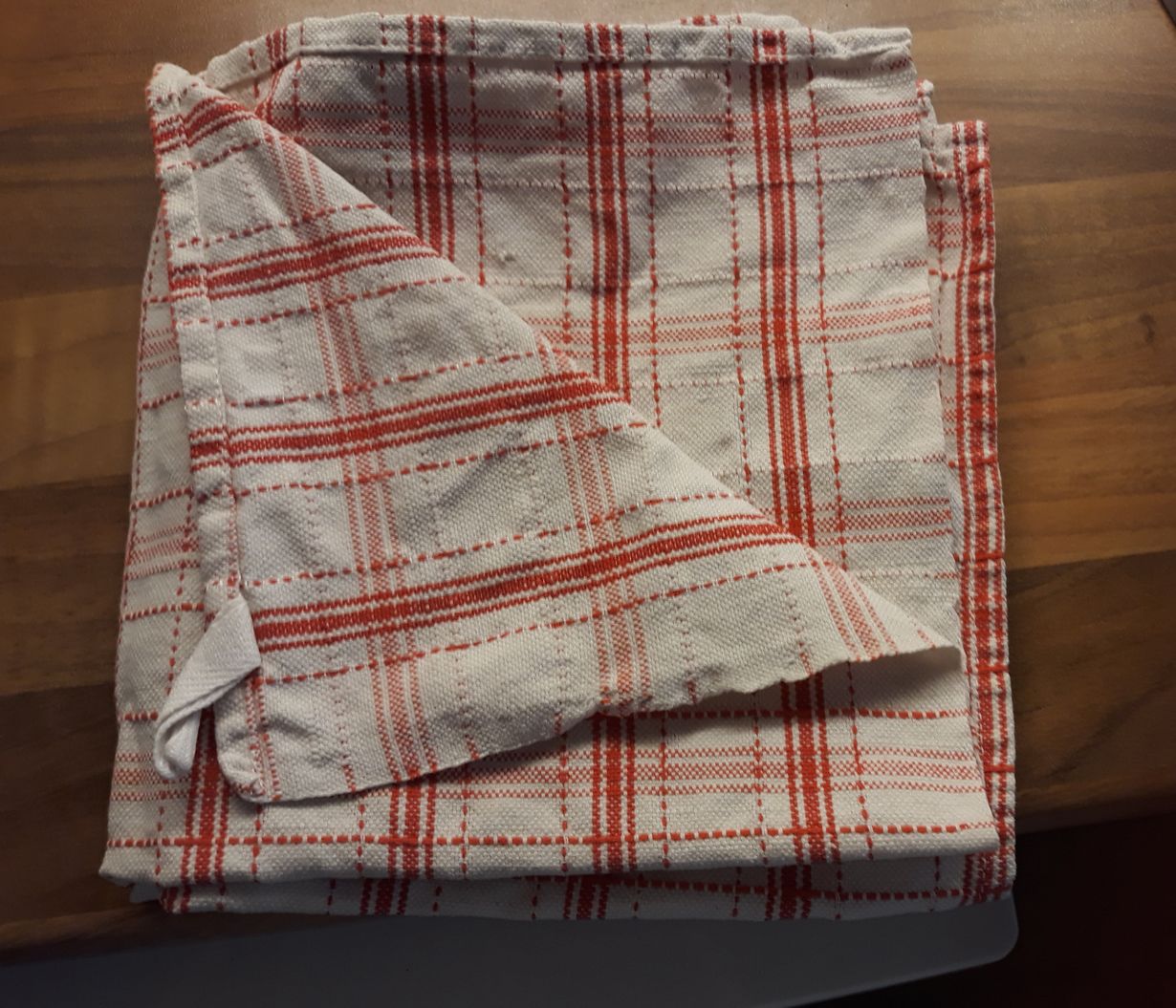 Tämä ihana pellavainen pyyheliina on nuorimman tyttäreni (nyt jo 30v) kummitädin itse kutoma. Kestää varmaan äidiltä tyttärelle.