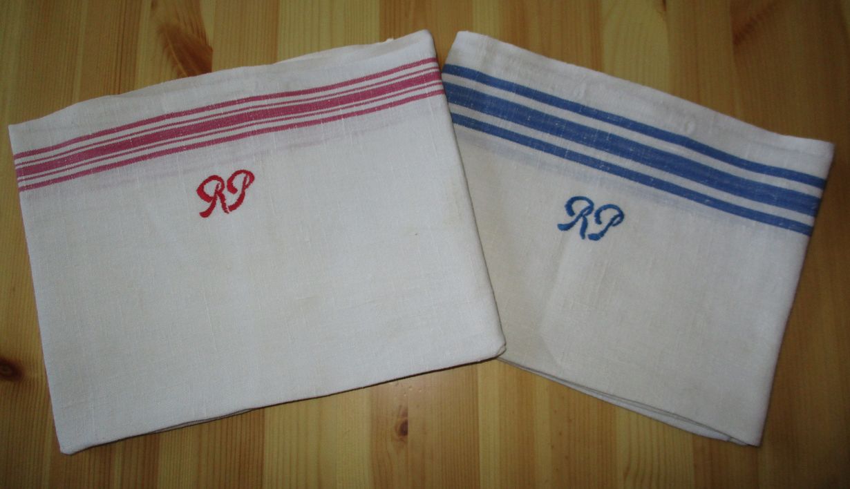 Hei. Pyyhekankaat olen ostanut ja tyttönimeni nimikirjaimet siihen kirjonut vuonna 1971. Menimme naimisiin elokuussa 1971. Astiapyyhkeet ovat rakas muisto. Samat pyyhkeet ja sama avioliitto ovat kestäneet tänne asti.
