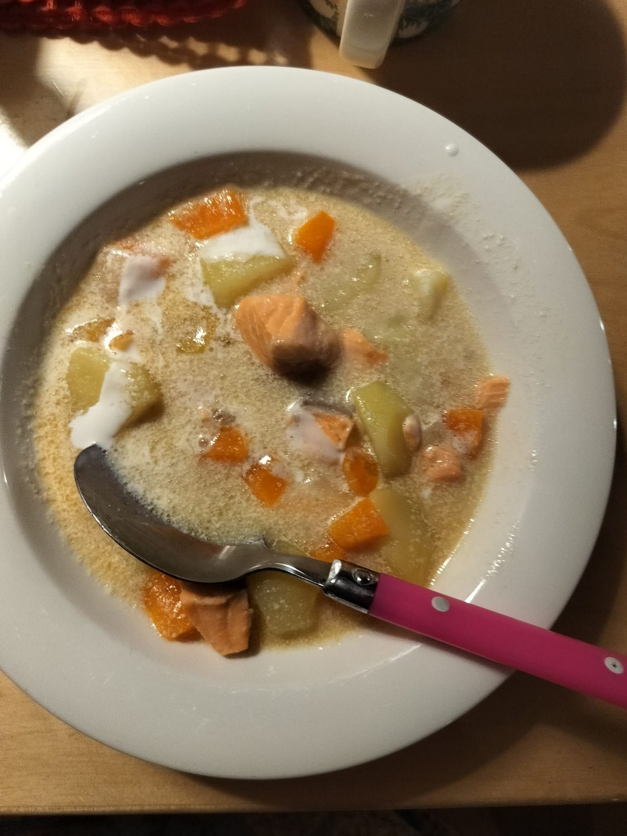 Keitot maistuvat aina. Runsaasti juureksia niin ruokasuositusten määrät alkavat täyttyä iltaisten marjojen ja parin hedelmän kera.