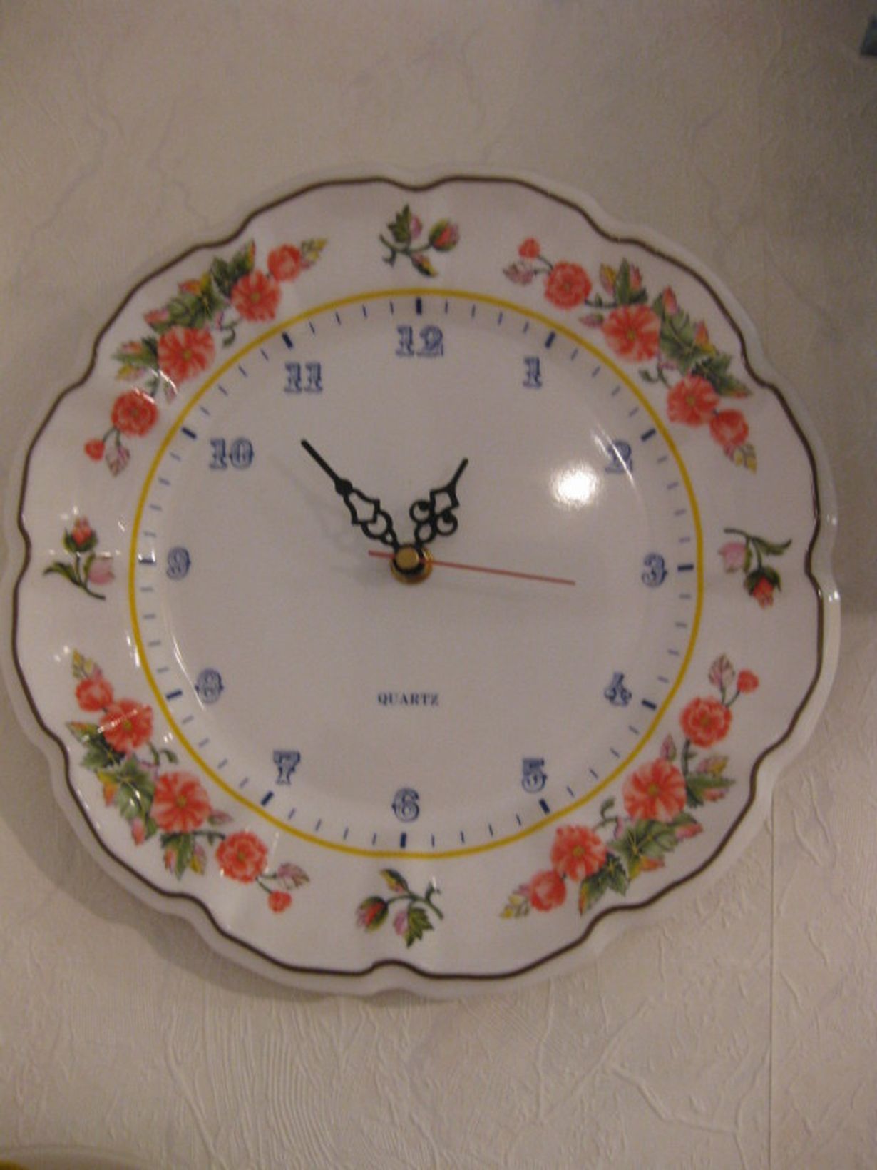 Keittiön kello jonka olen itse ostanut. taitaa olla parikytvuotta sitten ,en muista ihan tarkalleen. aina ollut samassa paikkaa.Materiaali on kovaa muovia ja hyvin on ajassa ollut.
