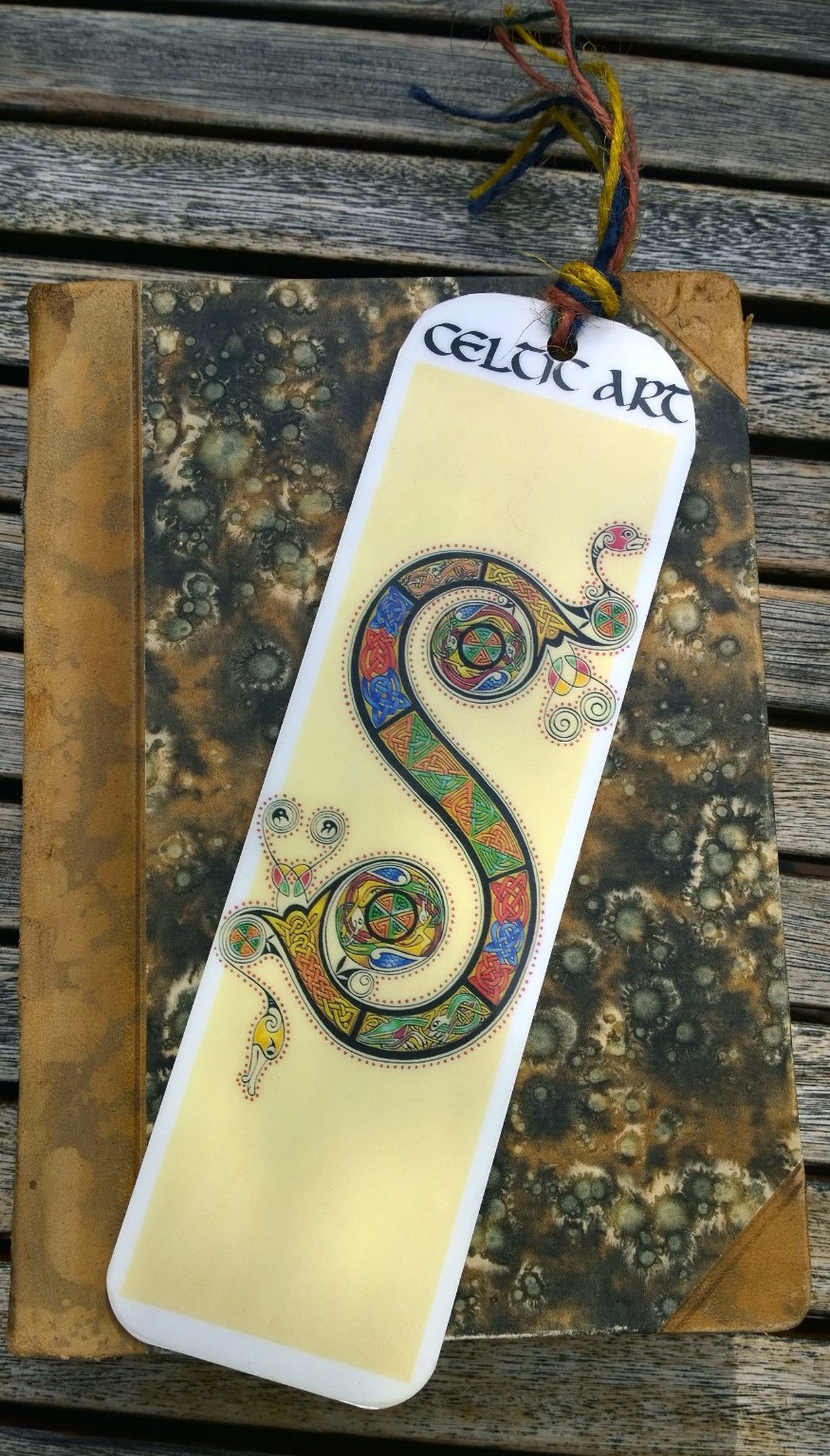 Irlannin matkalla 1980-luvun alussa matkamuistoksi hankittu kirjanmerkki, jossa kelttitaidetta. Alla 1963 lahjaksi saamani Kalevala. Molemmat edustavat minulle pysyvyyttä ja sivistystä.