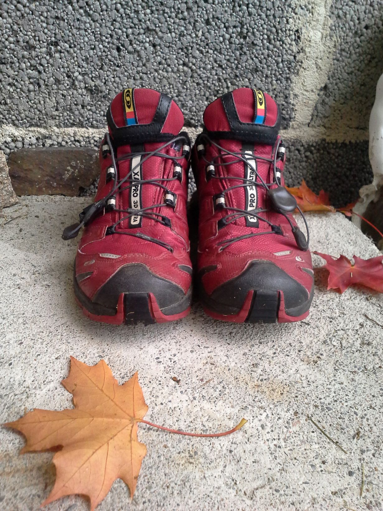 Nämä kengät ostin jo neljä vuotta sitten, halusin punaiset lenkkarit. Kalliit olivat kengät, mutta sen rahan edestä niillä taivallettu monta monituista kilometriä. On käyty Kuusamossa ja jopa Etelä-Afrikassa. Kiitos sille nuorelle miehelle, joka sai minut nämä kengät ostamaan.