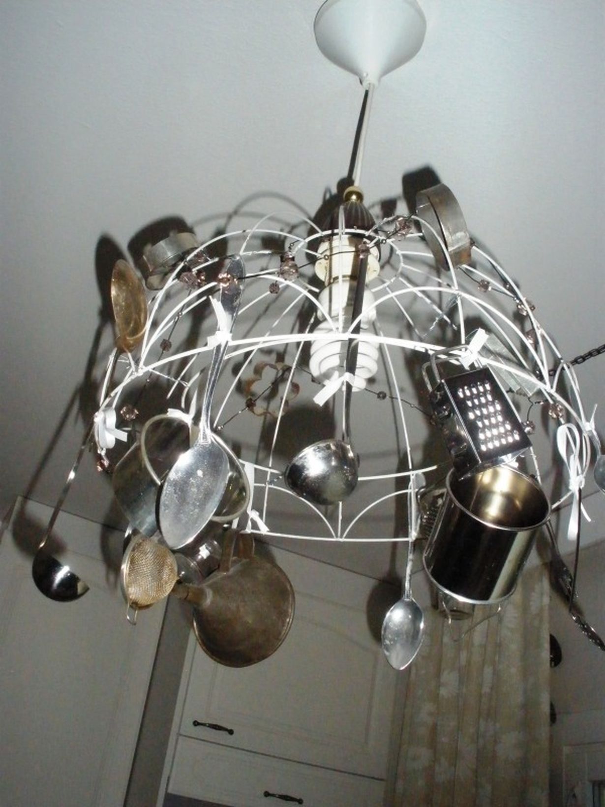 Tein tämän lampunkehyksen keittiööni runsas vuosi sitten. Aikani kuluksi olen näperrellyt muitakin "omituisuuksia" asuntooni muiden hämmästeltäväksi.