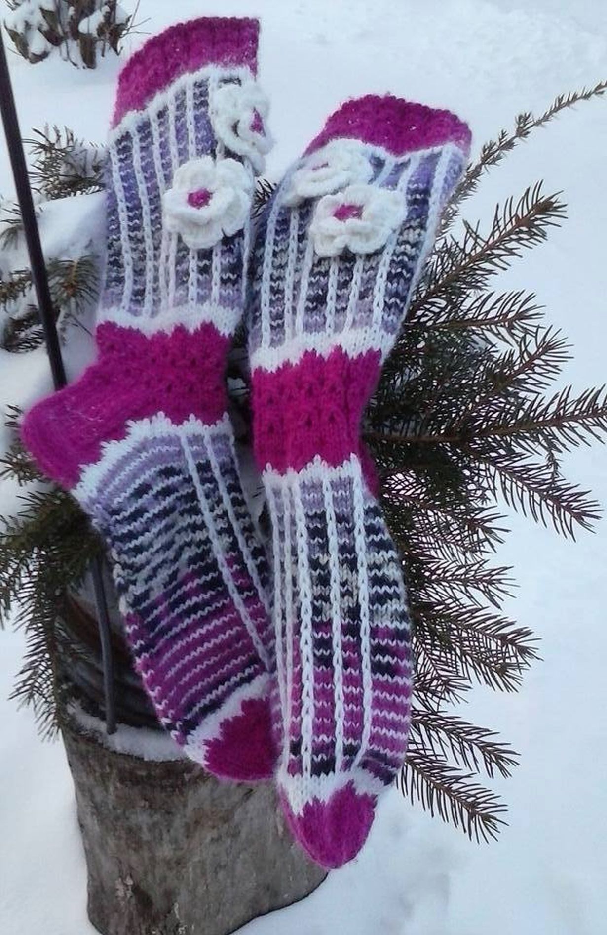 Lähetä kuvakisaan kuva villasukistasi - voita Familonin peitto ja tyyny! Kerrosrivinousu sukat kukilla Lennu 3.8.2022 klo 9:58 Kauneimmat villasukkani