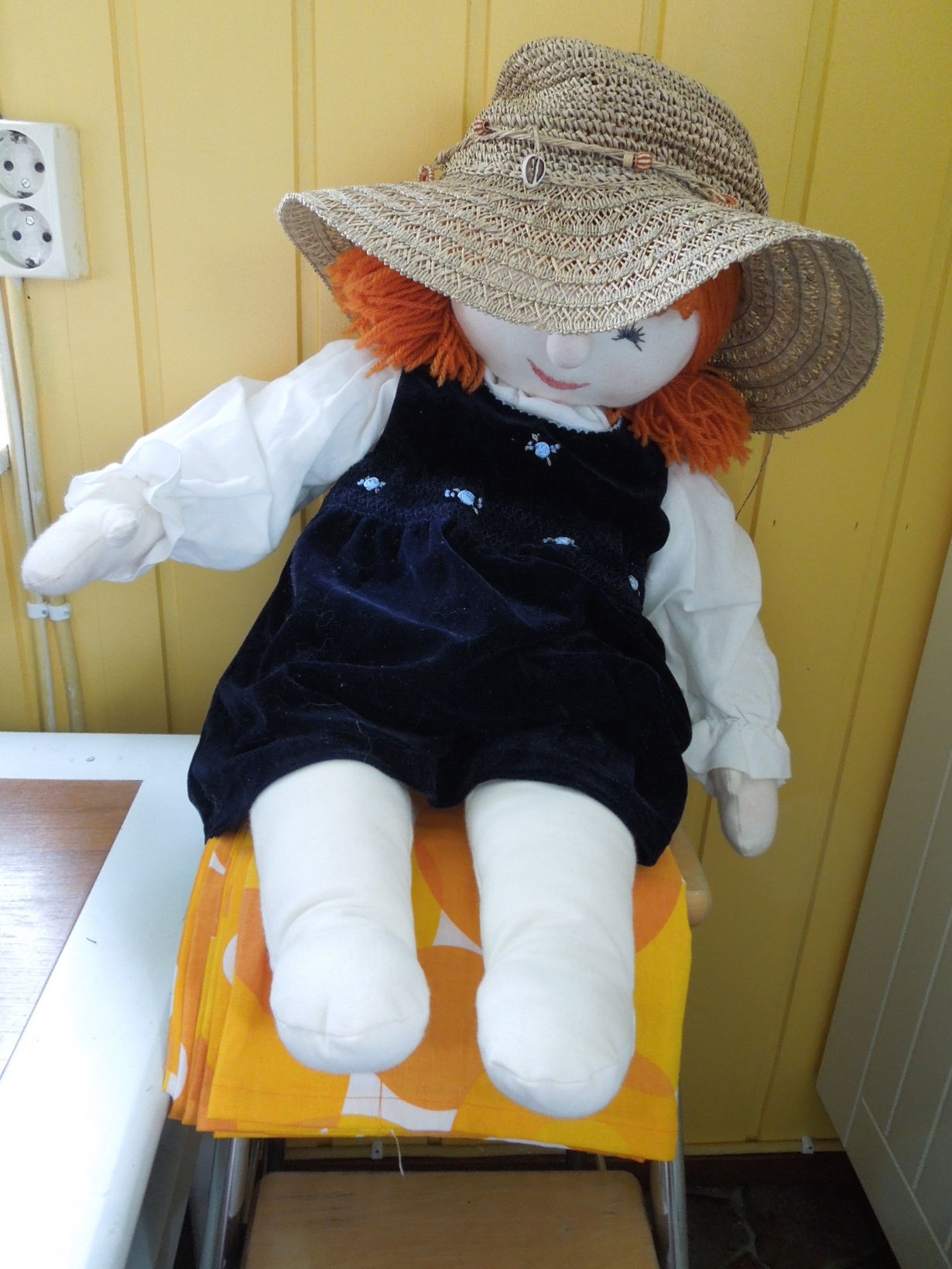 Tämä luonnonmateriaalista tehty hattu on ostettu oikeasta hattukaupasta. Kesäisin se suojaa minua auringolta ja talvisin sisareni tekemää mollamaijaa pölyltä.