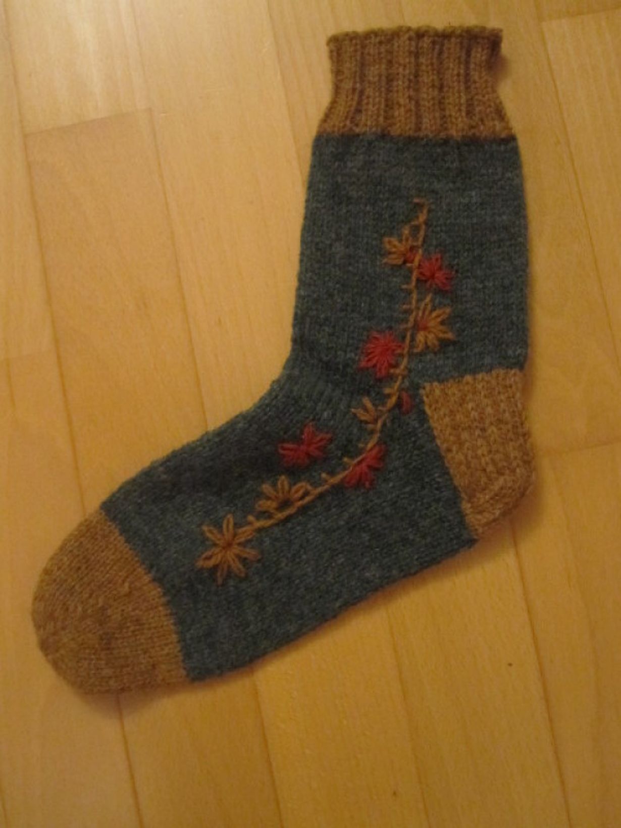 Tämä ihana arki: villasukat Kesäheinä 28.9.2011 klo 16:49 Tallinnasta ostetut, maanläheisiä värejä käyttäen tehdyt kauniit, kukkakuvioin koristellut villasukat ovat olleet hyvin mieleiset