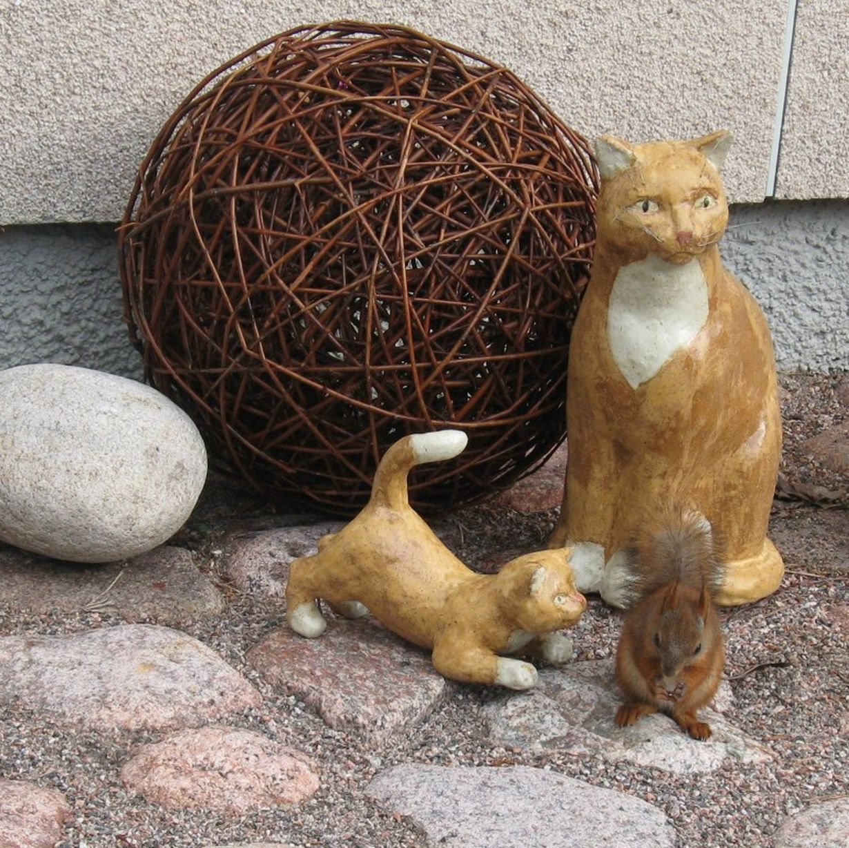 Tämä ihana arki: puutarhakoriste Kesäkissat 19.4.2012 klo 14:43 Oravakin tuli katsastamaan pihakissoja