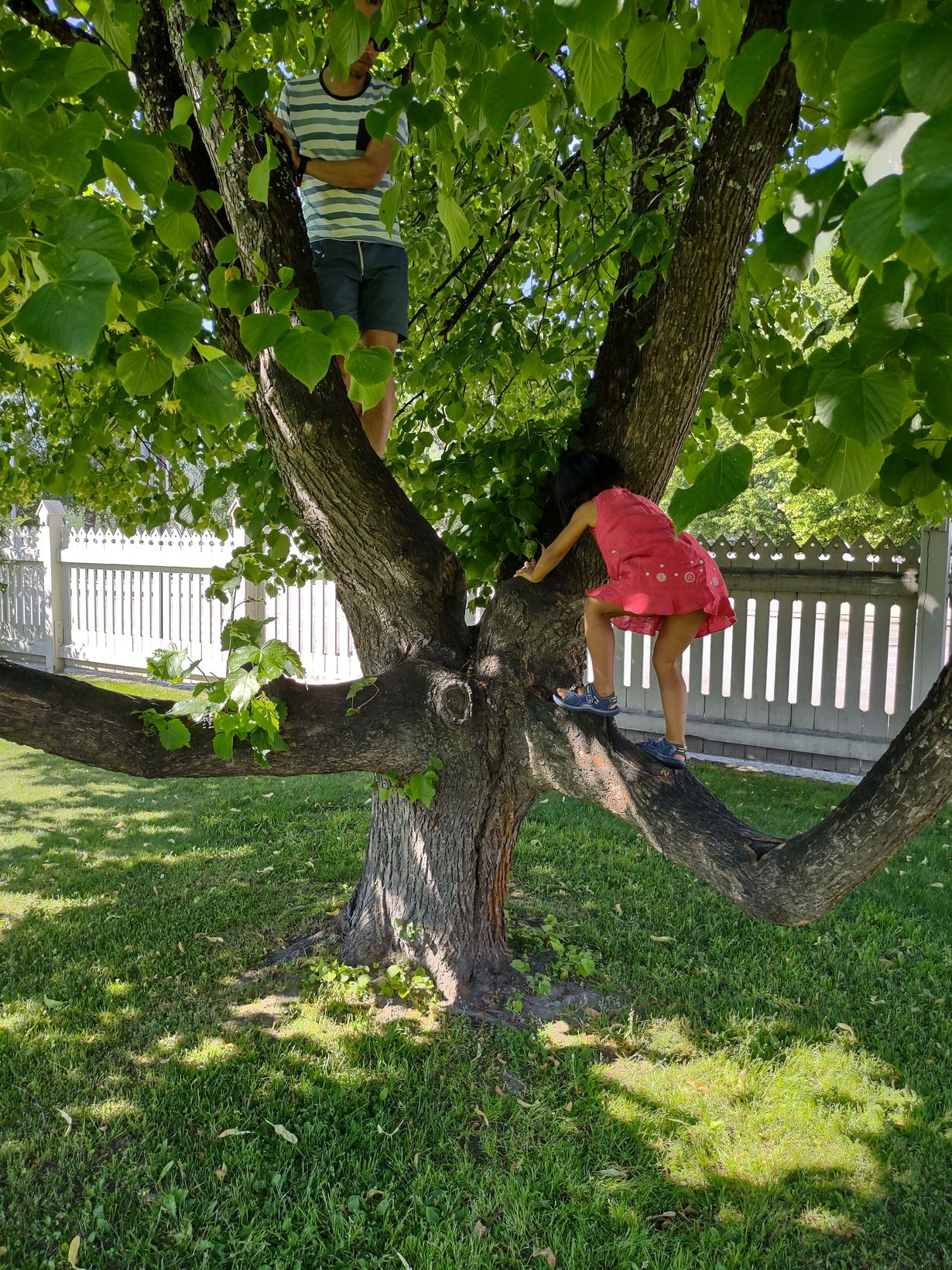 Kävimme heinäkuussa anoppilassa Pietarsaaressa ja sieltä leikkipuistosta löytyi ehdottomasti kesän paras kiipeilypuu, minne 5-vuotiaskin pääsi vaivattomasti itse kapuamaan