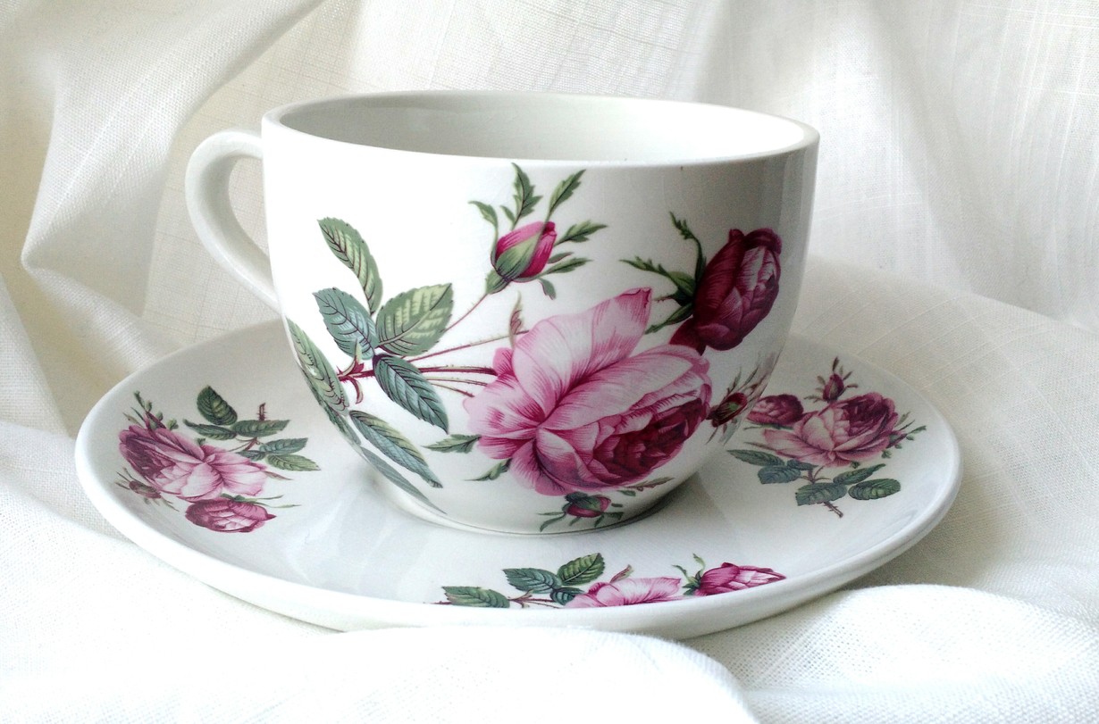 Löysin lempimukini kirpparilta ihan muutama viikko sitten, ja siitä on tullut suosikkini niin aamukahvimukiksi, iltateemukiksi kuin kipoksi jälkiruokajäätelölle! Ruusut ovat kauniita ja tulen aina hyvälle tuulelle nähdessäni ne.