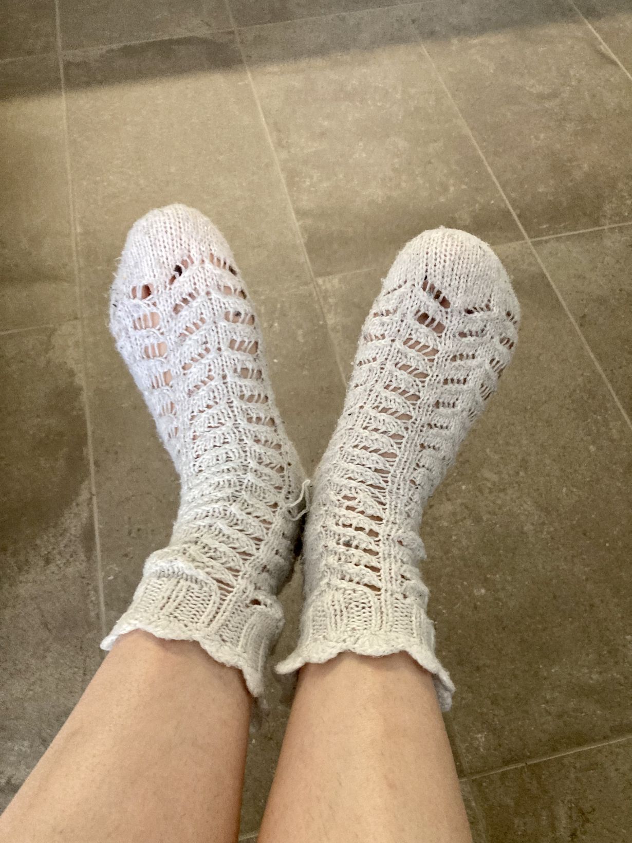 Äitini tekemät kevyemmät villasukat ovat kesällä ihanat. Villasukkia pidän kesät talvet. Näitä on parsittu pohjasta jo useamman kerran.