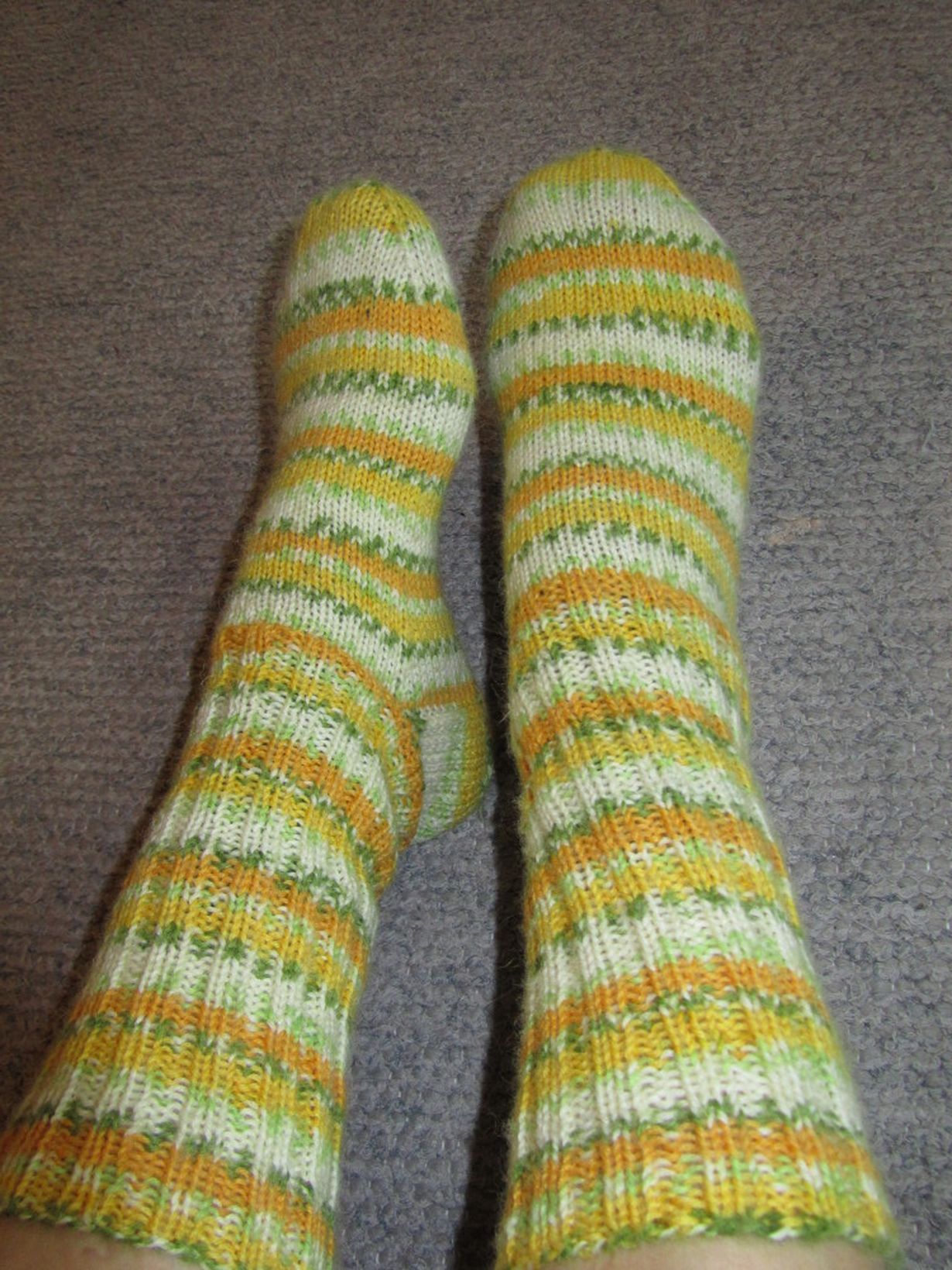 Äidin neulomat, ihanan ohuet ja raikkaan väriset sukat, jotka lämmittävät varpaita ja mieltä.