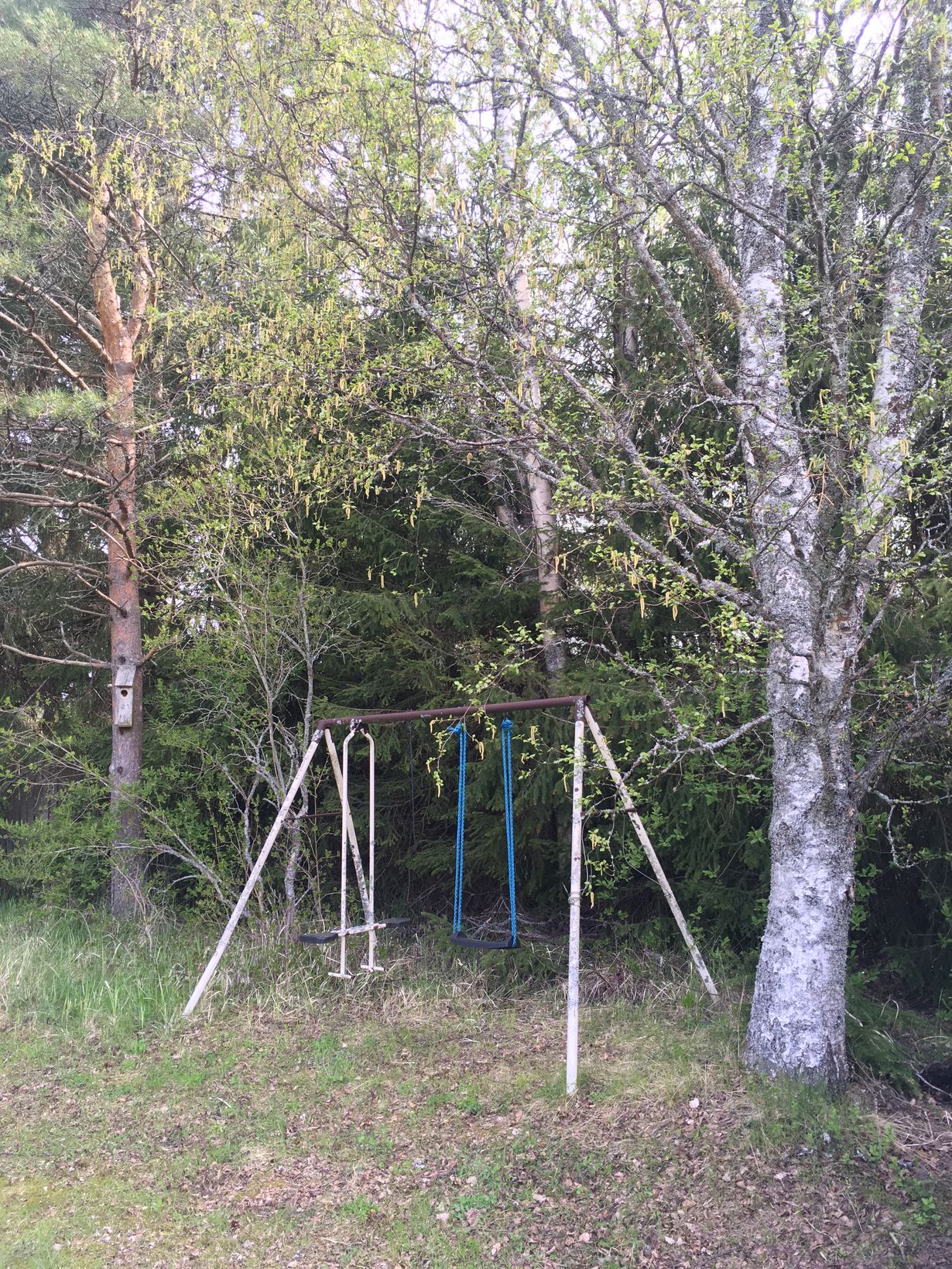 Ostimme jokunen vuosi sitten talon, jonka kylkiäisenä tuli tämä keinu. Kunnostimme, ostimme uudet narut, keinun ja kiikumme nyt ahkerasti kesät talvet. Ihan paras kylkiäinen näin vanhemmalle ja lapsettomallekin keinujalle.