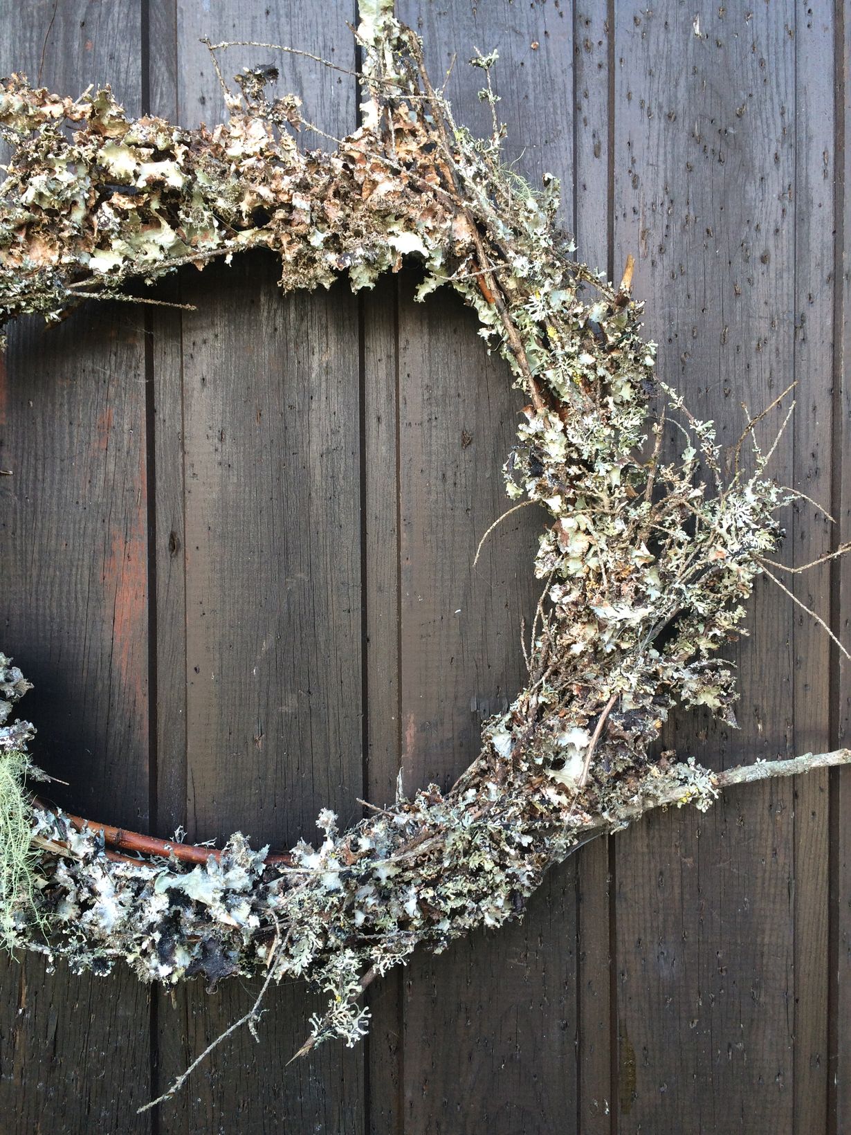 Loppukesän ovikranssini lakasui nopeasti, oli aika keksiä jotakin muuta. Tämä vanhojen puiden oksista koottu kranssi kestää syksyn tuulet ja sateet. . Jyväskylä