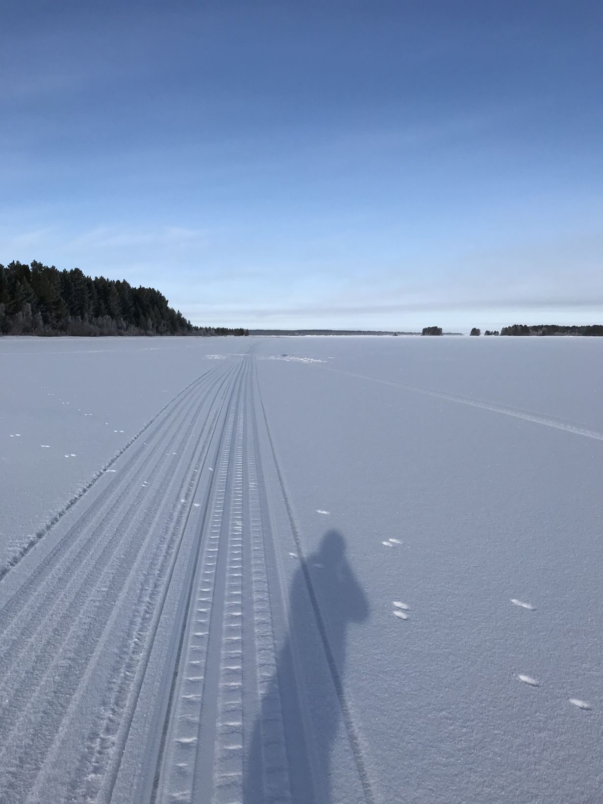 Kyllä kirkas taivas ja lisääntyvä valo on paras ja ensimmäinen kevään merkki minulle! Nautin tästä Oulujärven jäällä, omalla mökillä.