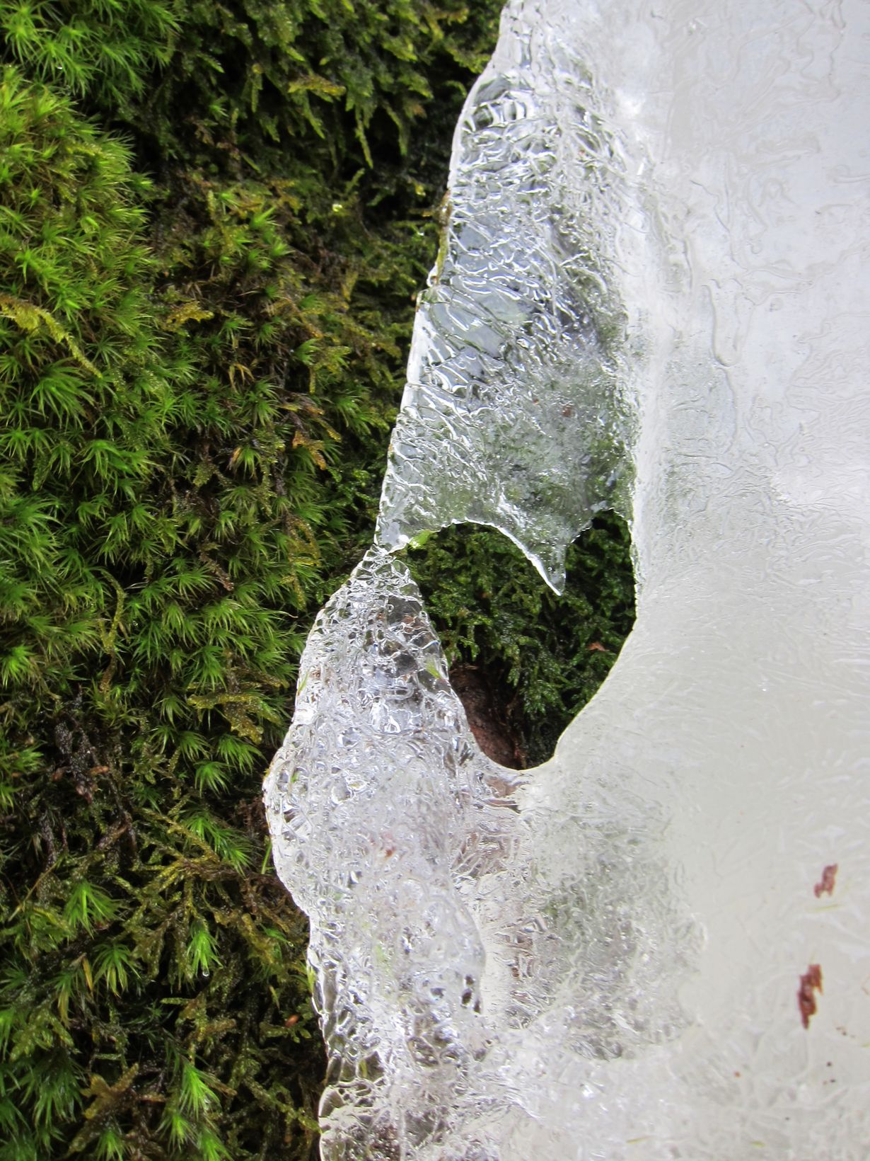 Tämän pienen sydämenmuotoisen aukon kuvasin metsäkävelyllä kalliolta valuvan jääputouksen juurella. Kuva on otettu Kirkkonummella Luomassa.