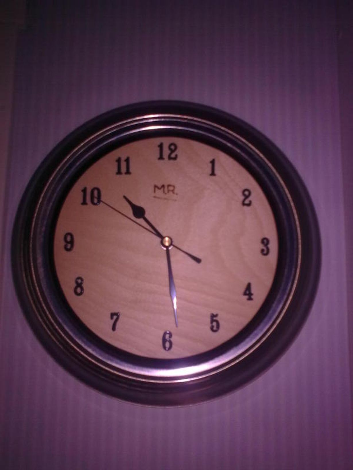 eteisen katosta putosi valaisin joka hajosi palasiksi.otin talteen metallisen kehän,puulaatikosta löysin vaneripalan,ostin numerot,viisarit ja koneiston kaupasta ja niistä valmistui kello keittiömme seinään:)