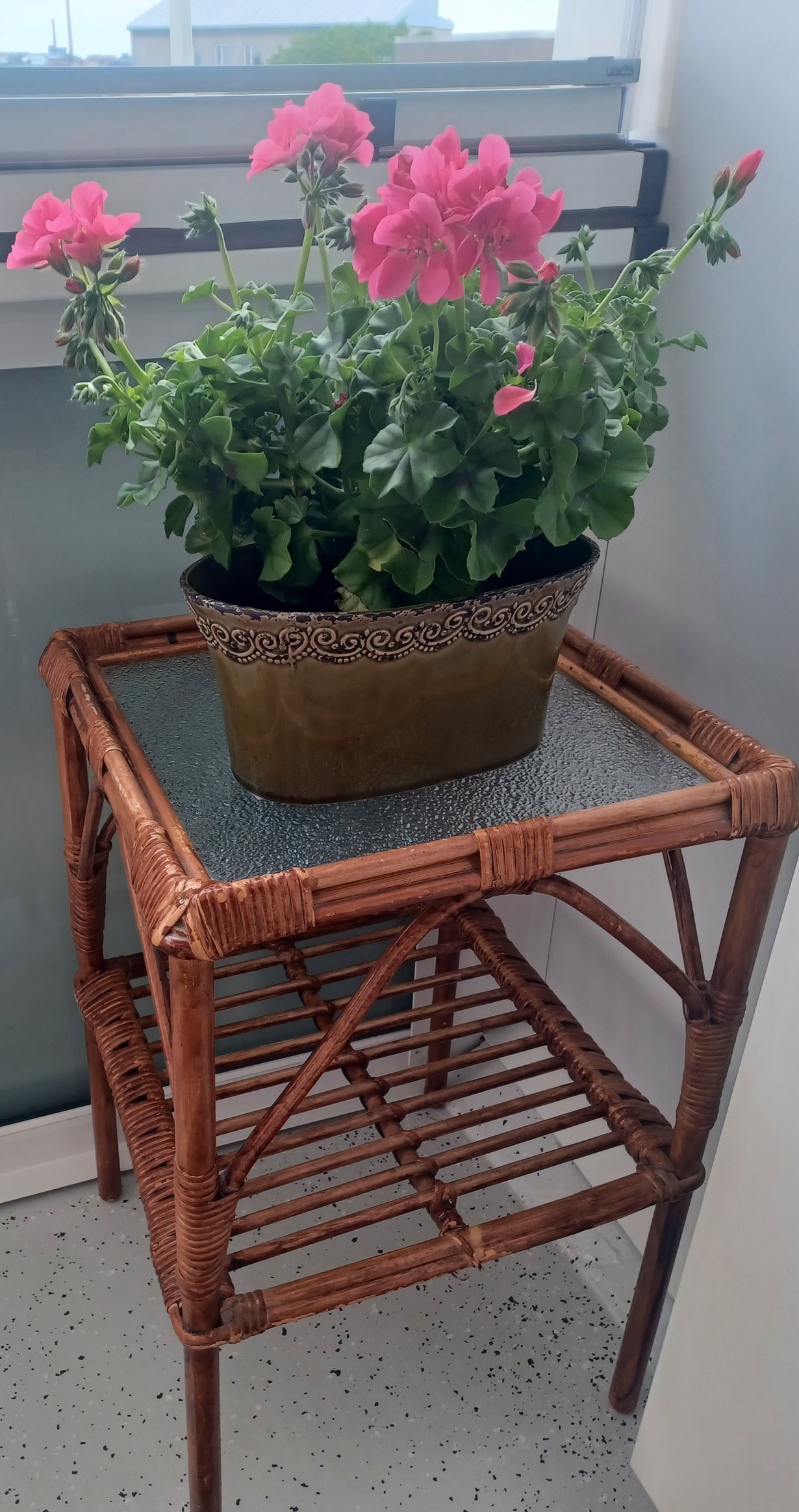 Kesäkuussa löytyi tämä kaunokainen ihan sattumalta. Oli tullut myyntiin edellisenä päivänä. Nyt parvekkeella mutta talven tullen kelpaa apupöydäksi sisätiloihin! Priimakunnossa!