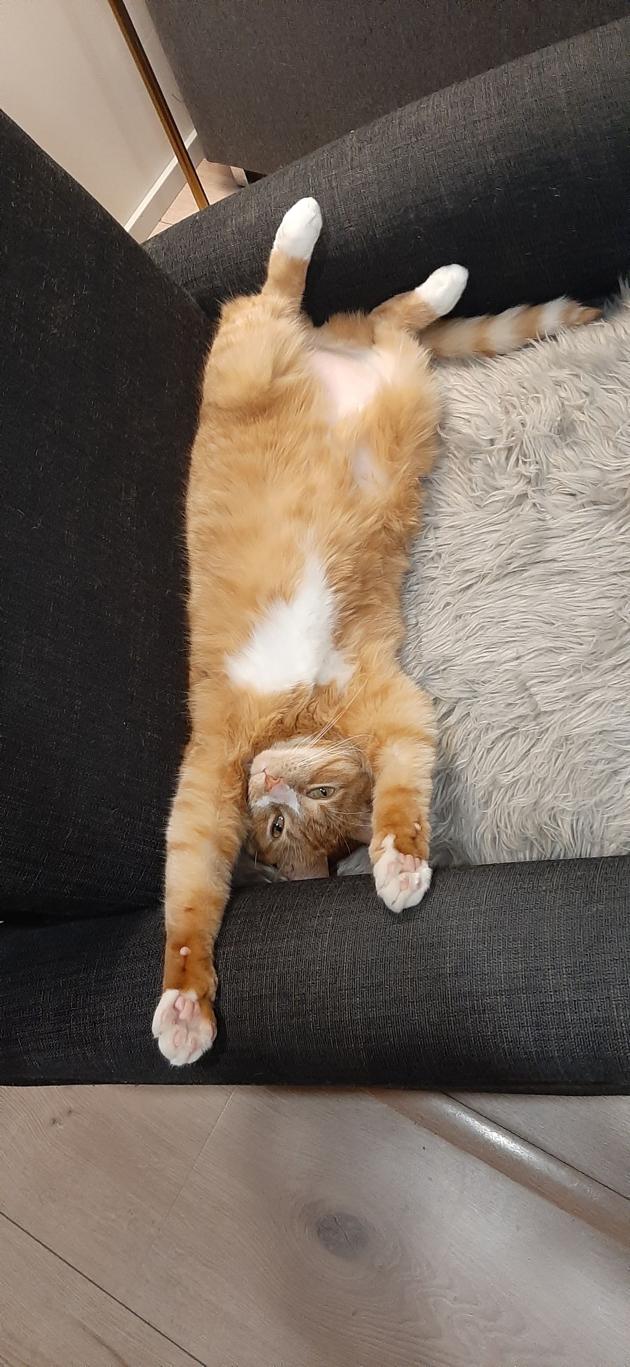 Meidän kisu ottaa rennosti aina kyseisessä nojatuolissa tai ihmisen päällä.