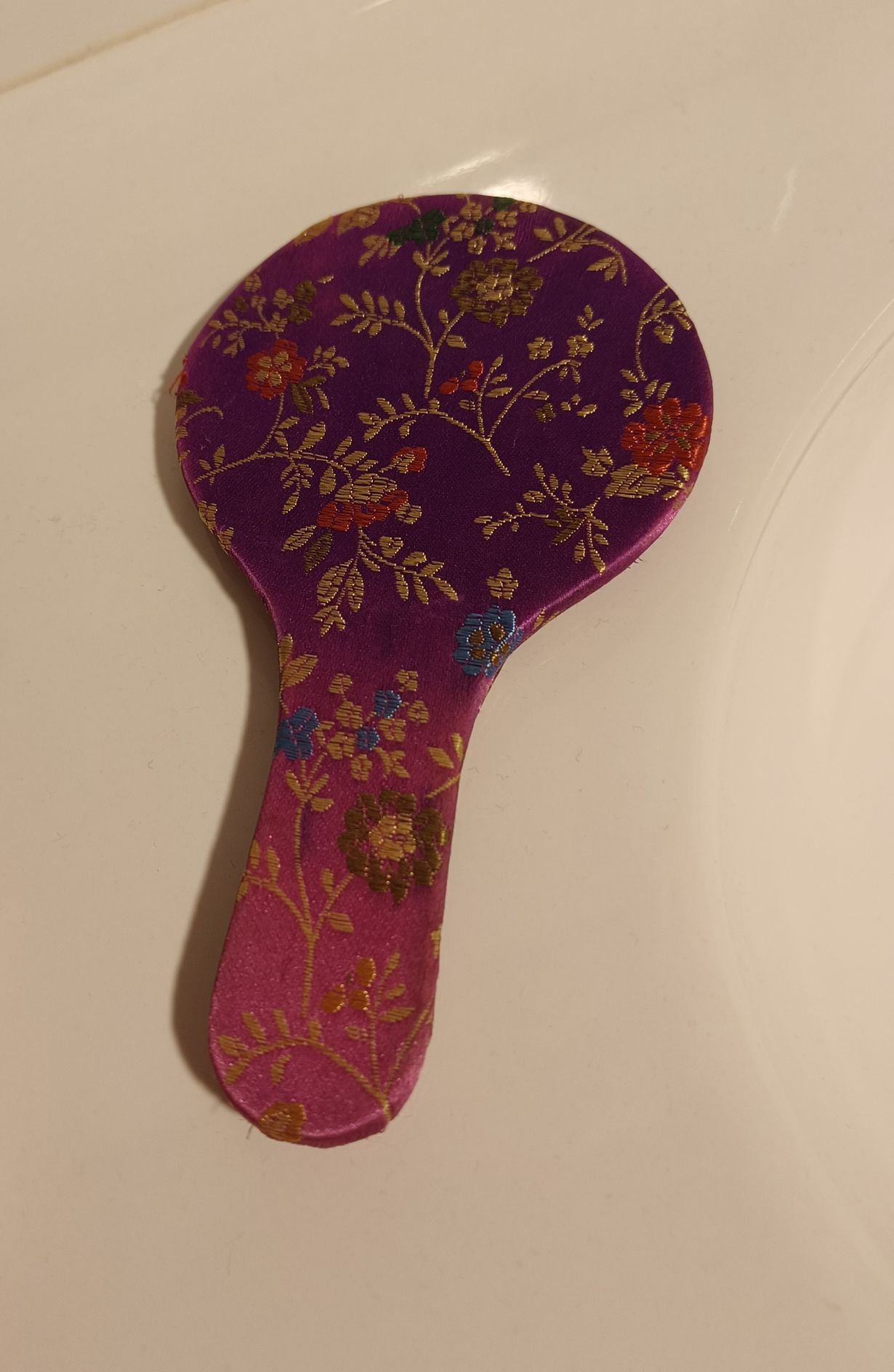 Kiinan terrekottasotilaat kävivät Tampereella 2013. Ostin tämän peilin museokaupasta saman vuoden syksynä. Ihastuin silmälaseihini tuolloin sopivaan violettiin, väri alkaa jo kädensijasta haalistua.