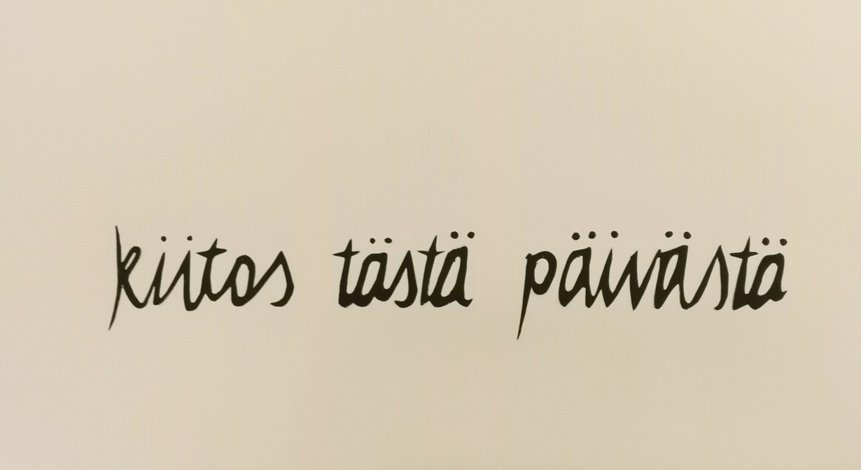 Tuntemani nuori pariskunta kuoli liikenneonnettomuudessa. Tämä kosketti minua, ja muistutti elämän lahjasta. Samana iltana, yömyöhään, tein itse mustasta kartongista pienillä saksilla leikkaamalla tämän tekstin. Se on seurannut muuton mukana uuden kotini seinälle, ja tämä on yksi merkittävimmistä asioista kodissani.