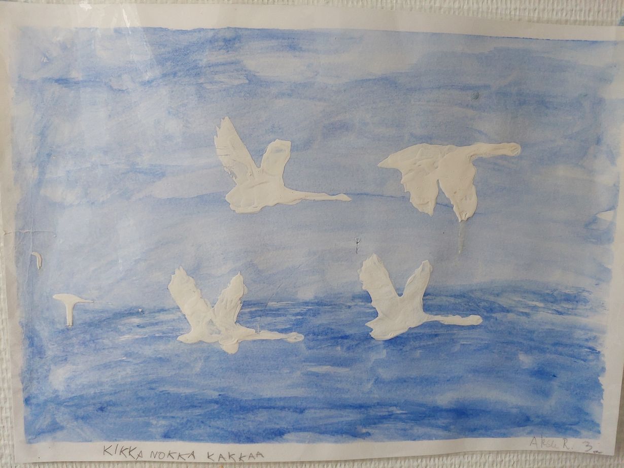 Tämän nuorimmaiseni 6.luokalla tekemän työn olen laminoinut seinälle. Teoksen aihe puhuttelee ja nimi hymyilyttää.