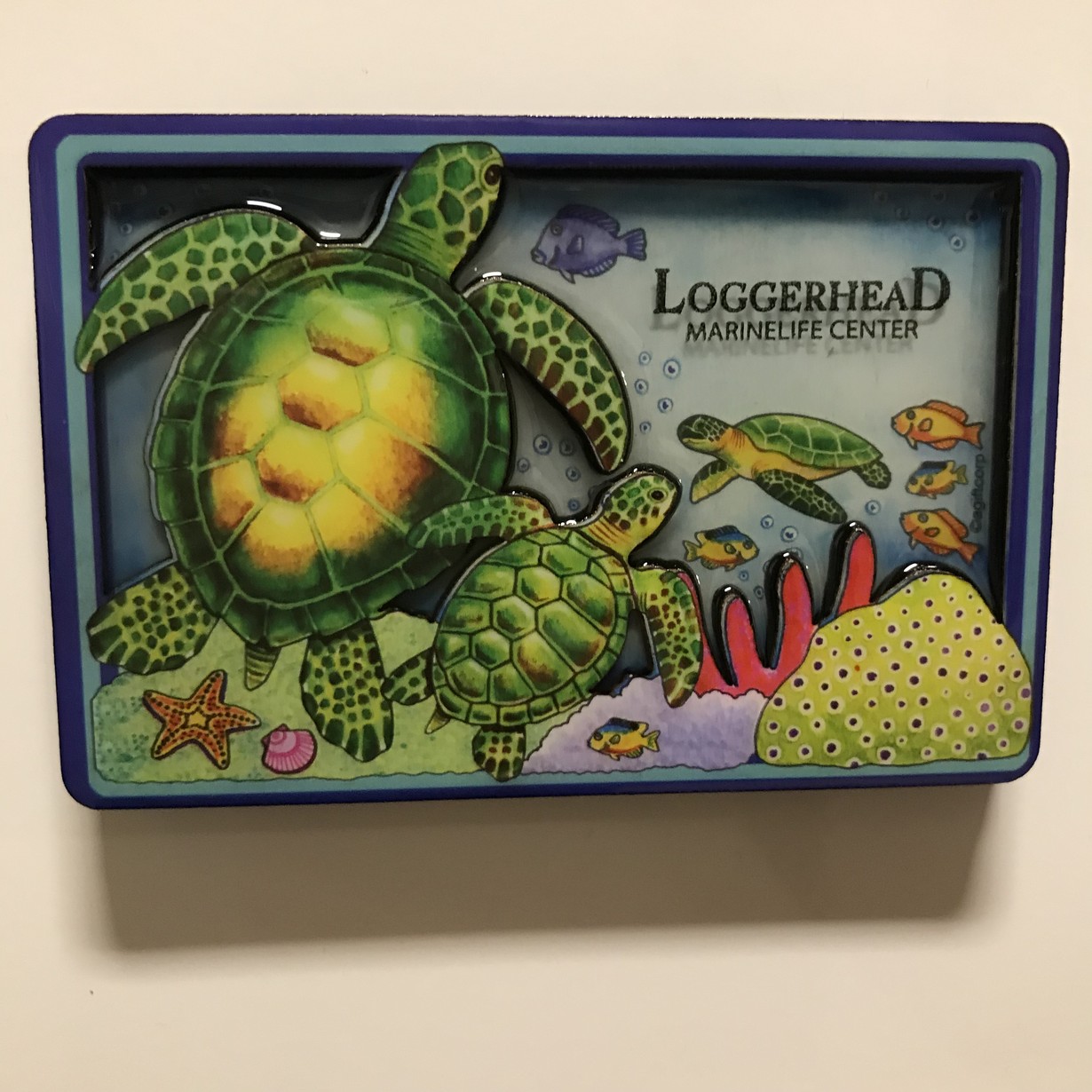 Ostin magneetin Floridasta Loggerhead marinelife centeristä. Kilpikonnasairaala, jossa hoidetaan vapaaehtoistyönä esim. veneiden vaurioittamia kilpikonnia.