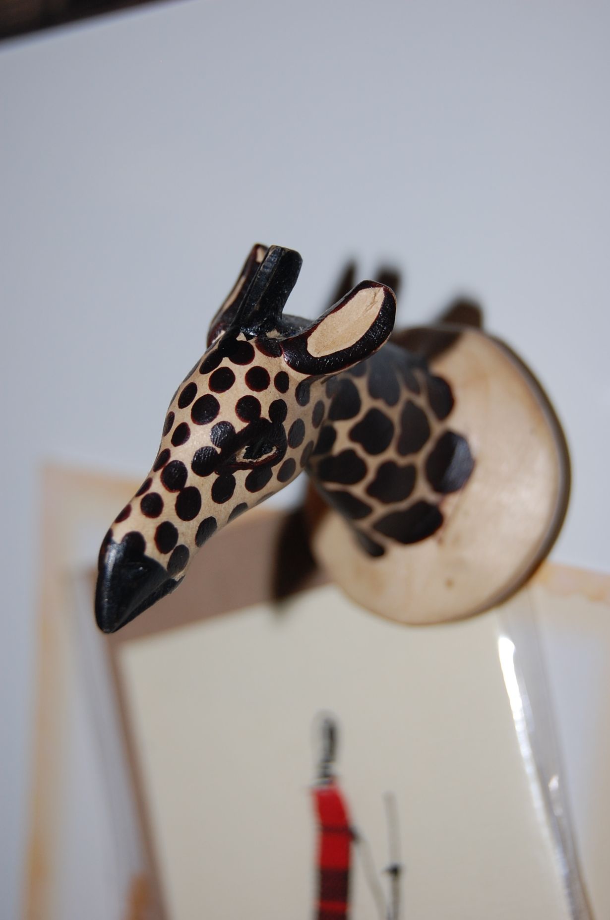 Tuon ja saan matkoilta yleensä tuliaisiksi jääkaappimagneetteja. Ne ovat pieniä ja hyödyllisiä, ja jos matkoilta jää vielä ulkomaan kolikoita, niistäkin voi tehdä kätevät jääkaappimagneetit. Tämä kirahvi on muisto Keniasta, jossa näimme upeita kirahveja.
