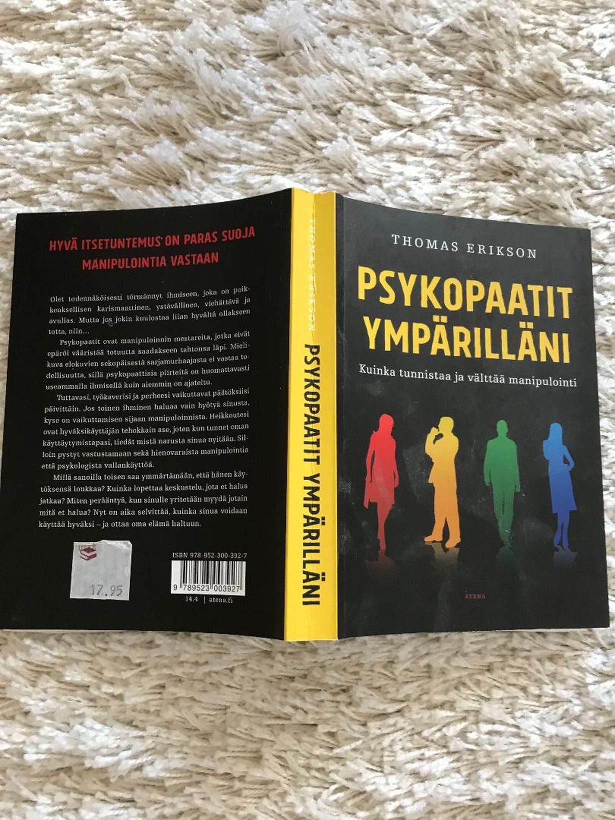 Lähetä kuvakisaan kuva kirjasta, jota olet lukemassa - voita NOSH -lahjakortti! Kirja jota luen nyt Anneli 25.8.2022 klo 12:20 Thomas Erikson: Psykopaatit ympärilläni. Kuinka tunnistaa ja välttää manipulointi